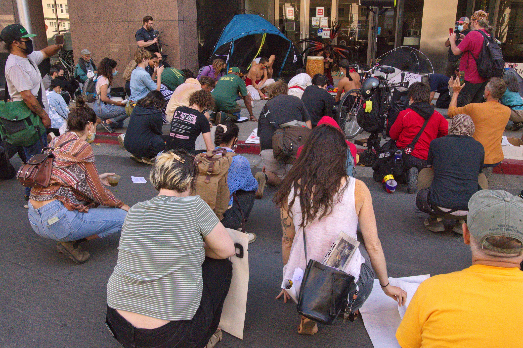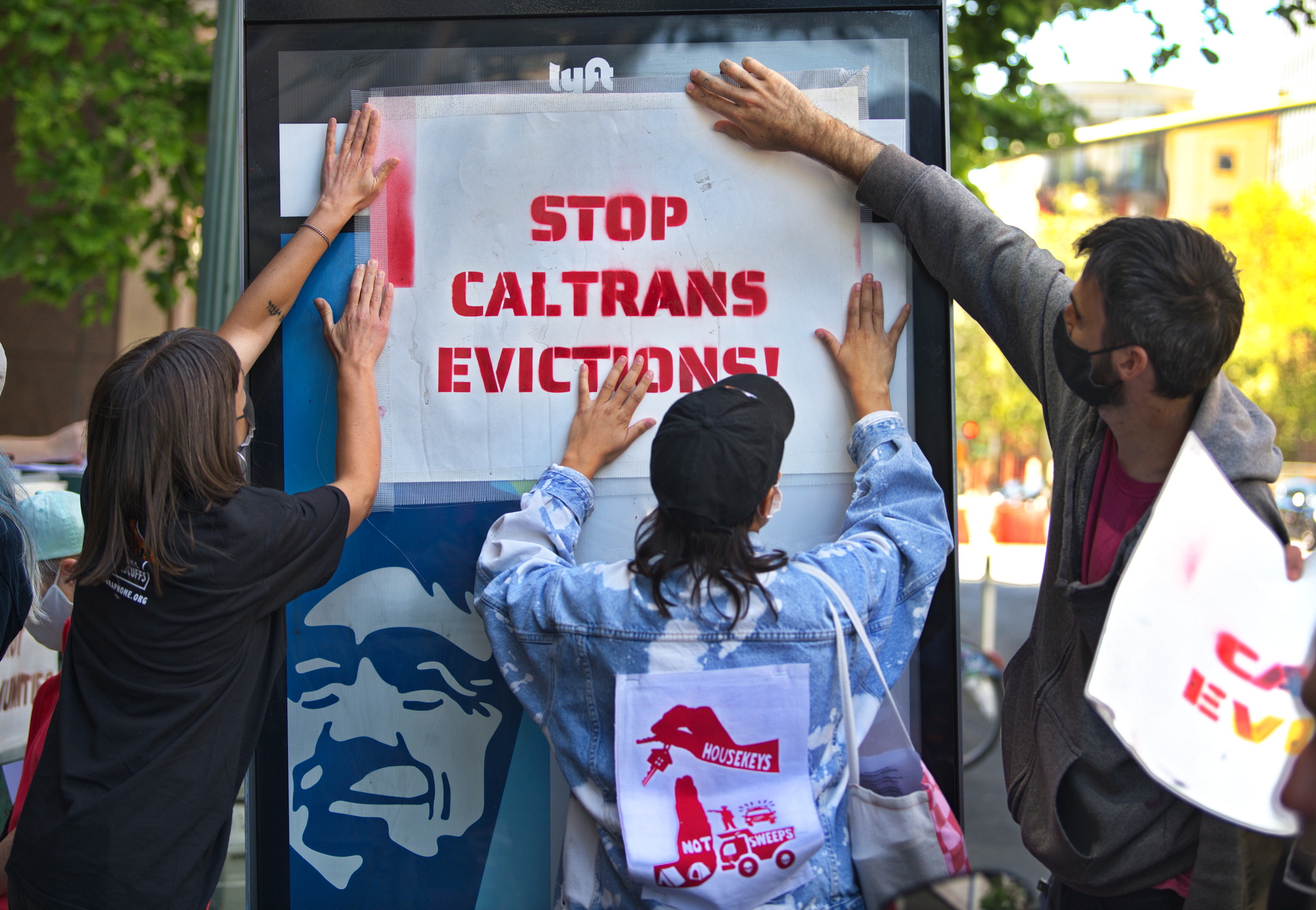 Unhoused and Supporters Demand "Support not Sweeps" at Caltrans HQ