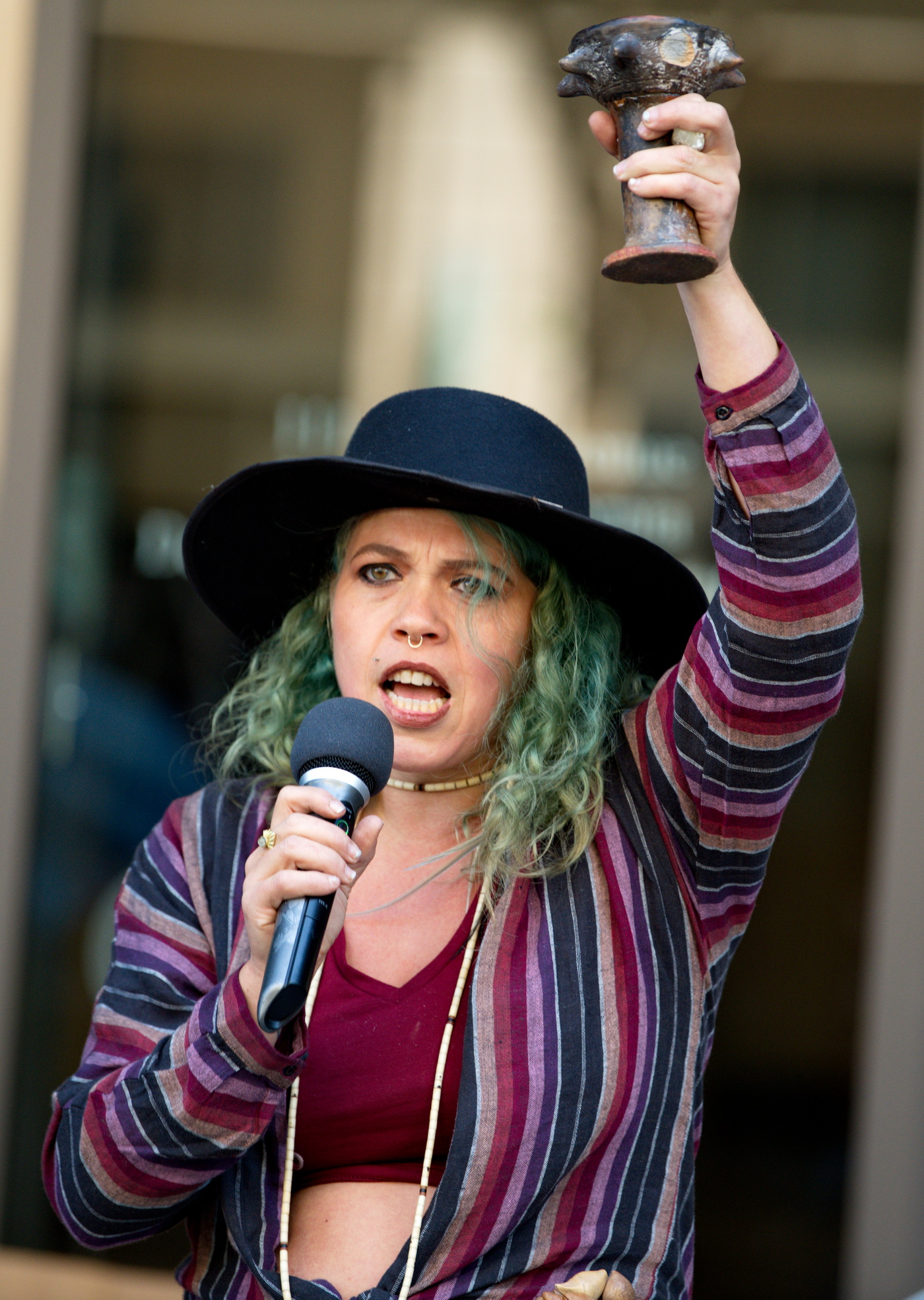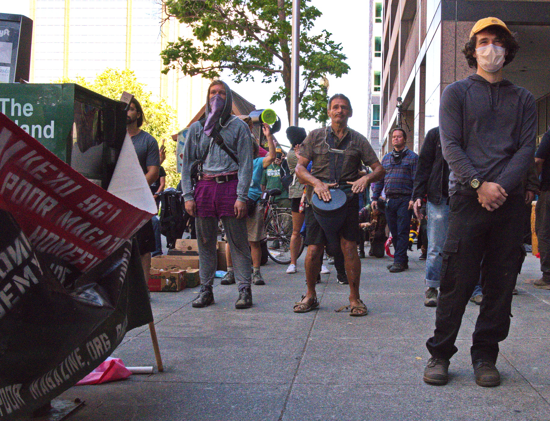 Speakers and musicians elevated the voices of the unhoused at a press conference honoring WHY people should be allowed to REMAIN IN PLACE or be offered REASONABLE, PERMANENT housing.