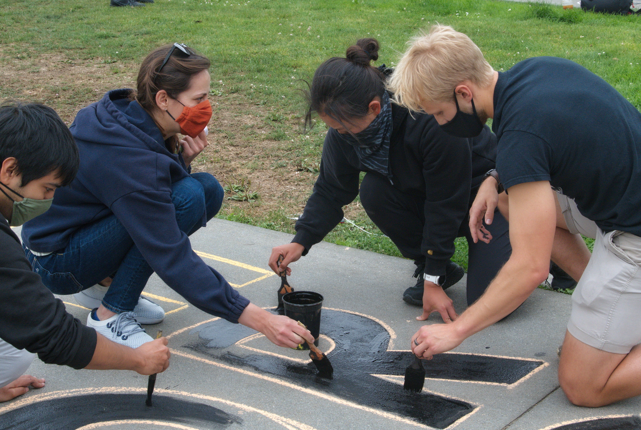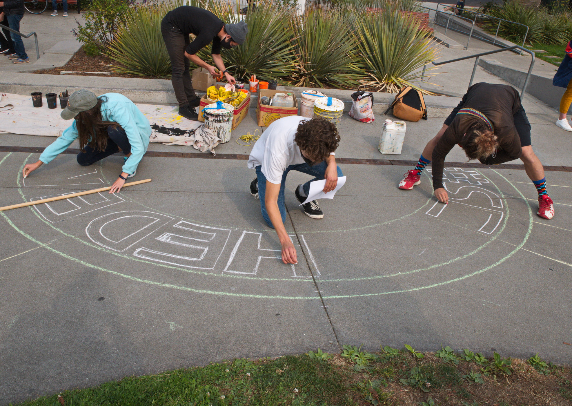 On Thursday, seniors, toddlers, and young activists with buckets of yellow, black and orange paint converged on Dolores Park's central lane to paint giant mural.In coordination with similar actions throughout the country, the mural demanded that congress "seal the deal" and pass the biggest and boldest climate and care infrastructure bill in history.