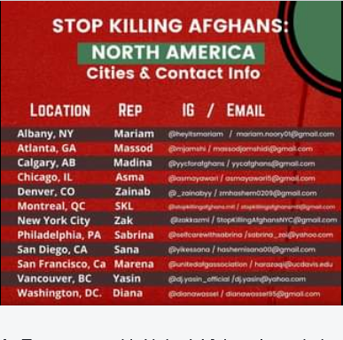 Join the global movement involving more than 30 cities worldwide. Afghanistan is currently the most dangerous country in the world due to the failure of the western-backed Afghan government and betrayal of Afghan people by the US and regional countries.