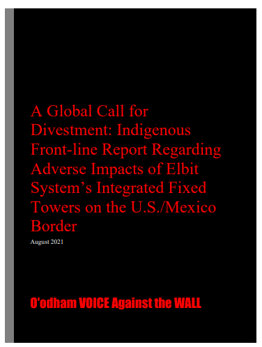 O'odham Voice Against the Wall demands a halt to the destruction and surveillance underway by Israel's Elbit Systems on the Tohono O'odham Nation and an end to the militarization by the U.S. Border Patrol, in a new report released to the world today.