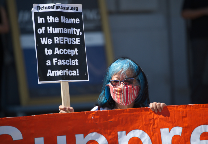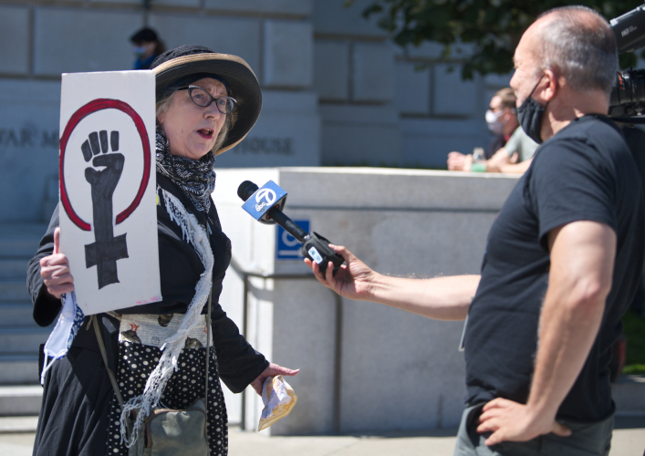 The action was organized by Refuse Fascism, Vigil for Democracy, Raging Grannies Action League and Revolution Books.
