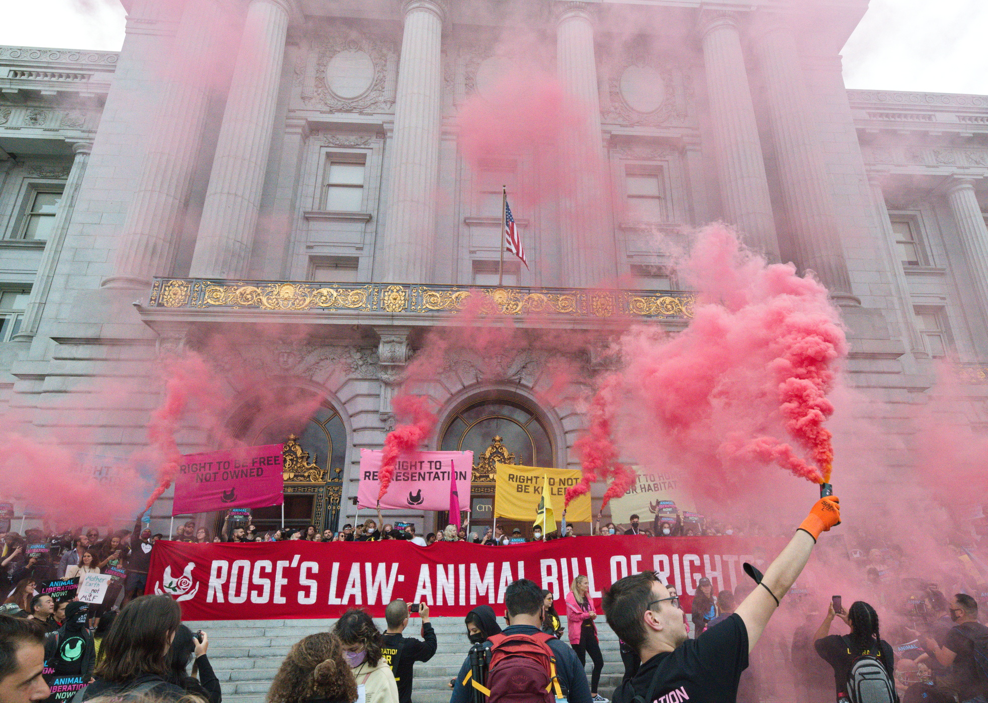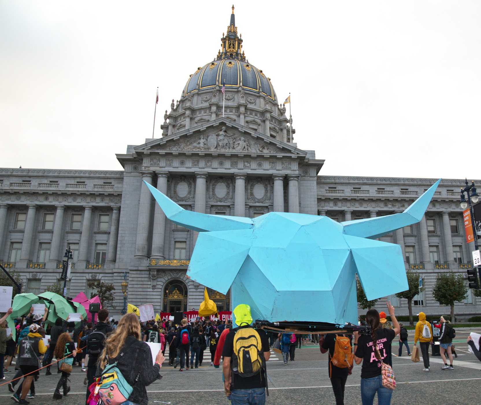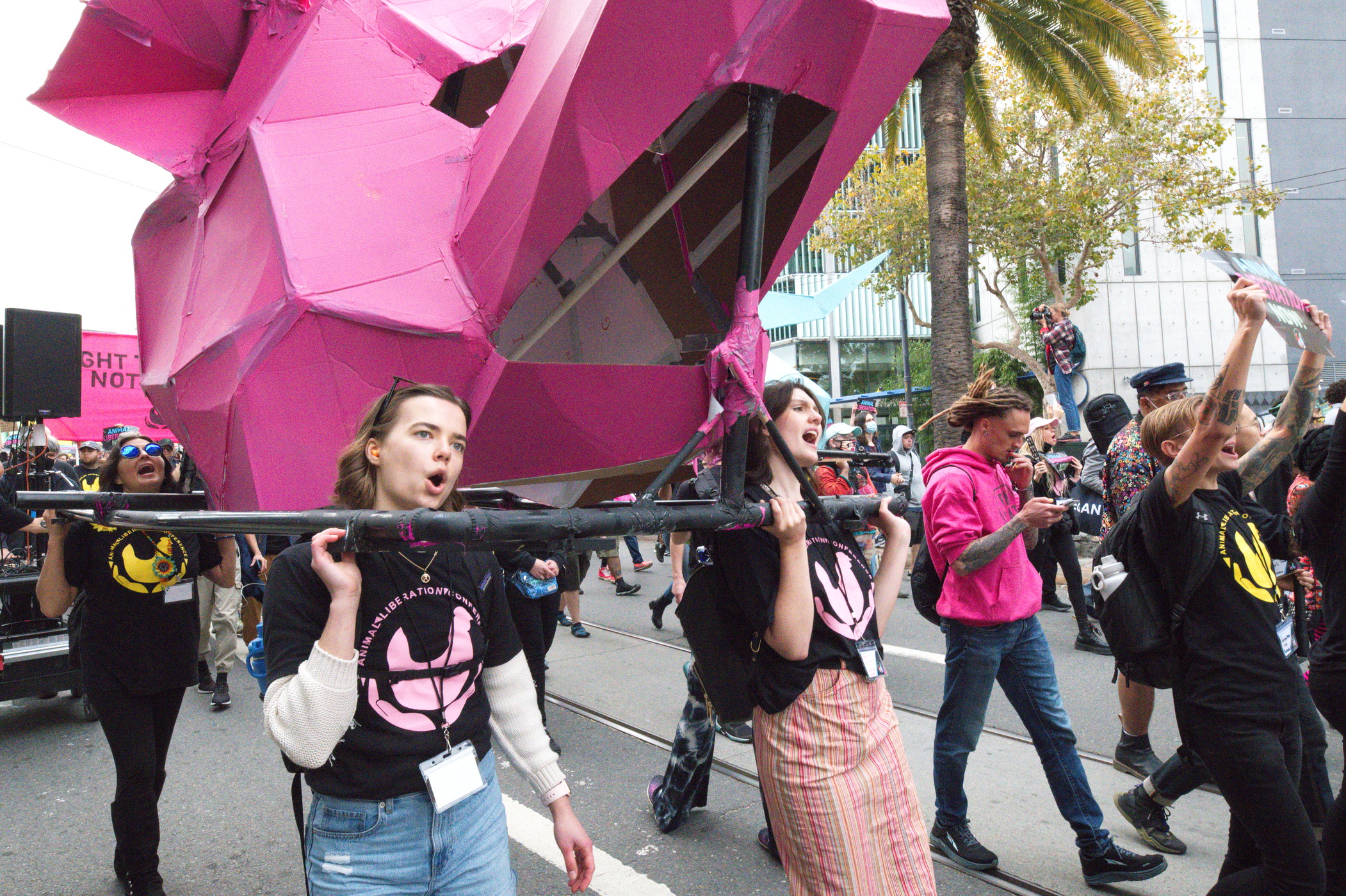 From Dolores Park to City Hall with a die-in at Whole Foods, a march organized by DxE, Direct Action Everywhere