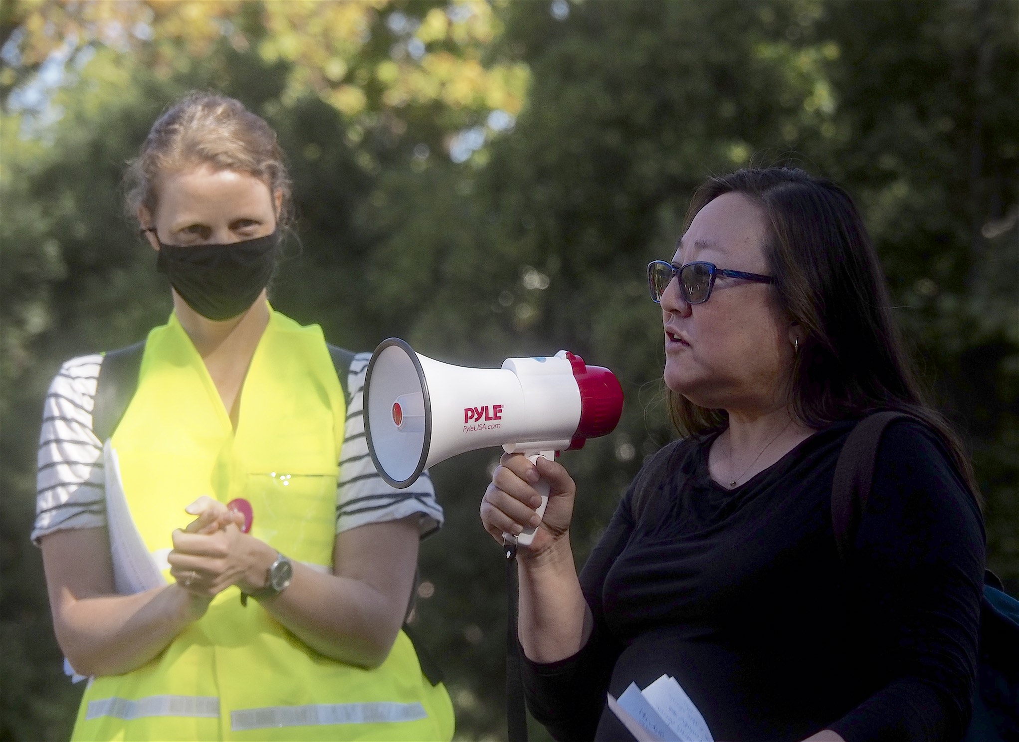 Featured photos include those taken on the colorful steps in front of Japanese variety good store Daiso, marching past the El Cerrito movie theater marquee, and gathering to rally. Signs and costumes were quite creative, not unexpected in a town near Berkeley, California.