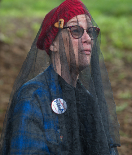 One demonstrator wore a black mourning veil over her face. Many carried little heart shaped pins of a black rose, a Victorian symbol of tragic love, danger and death.