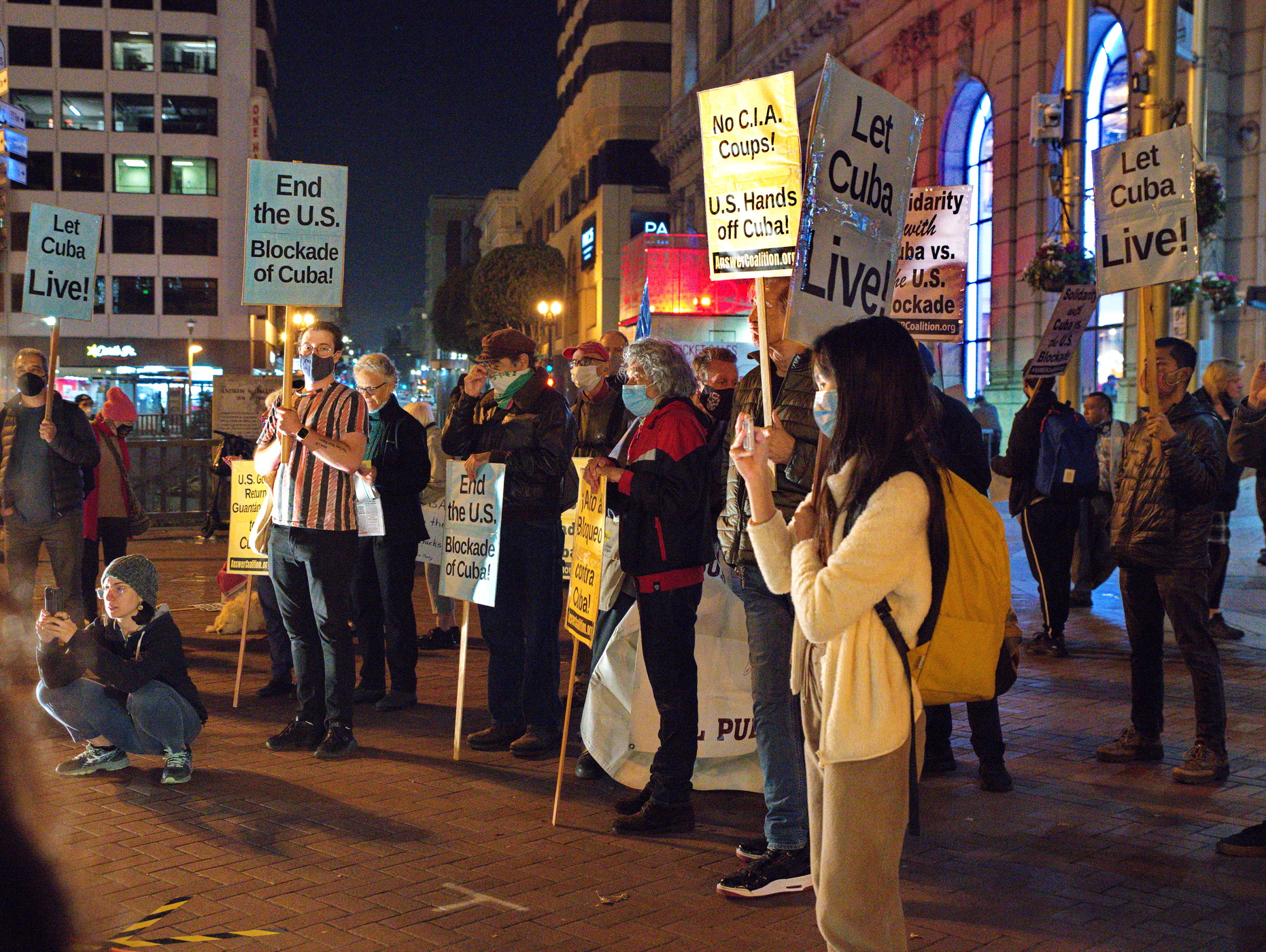 The demonstrators are calling on people to show their support for the right of Cuba to retain its sovereignty and for freedom from imperialist efforts to overthrow the government.