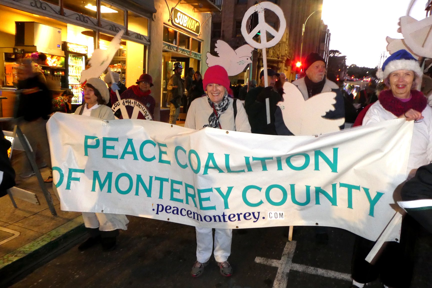 March with the Peace Coalition of Monterey County in the First Night Monterey Starlight Procession
