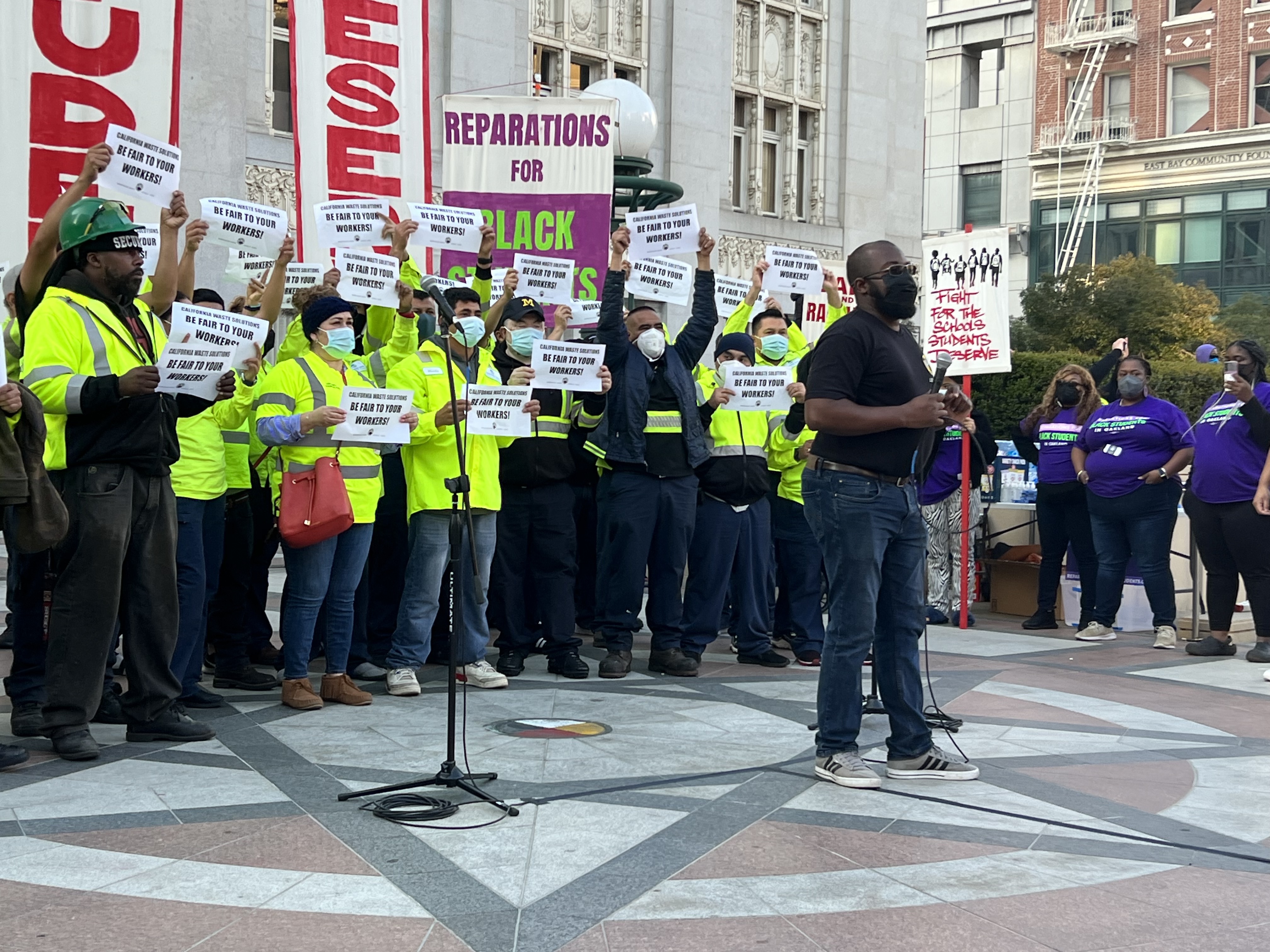 Additionally ILWU Local 6 workers spoke out about their contract fight with California Waste Solutions during the rally and their failure to get a raise for years and no pension plan.