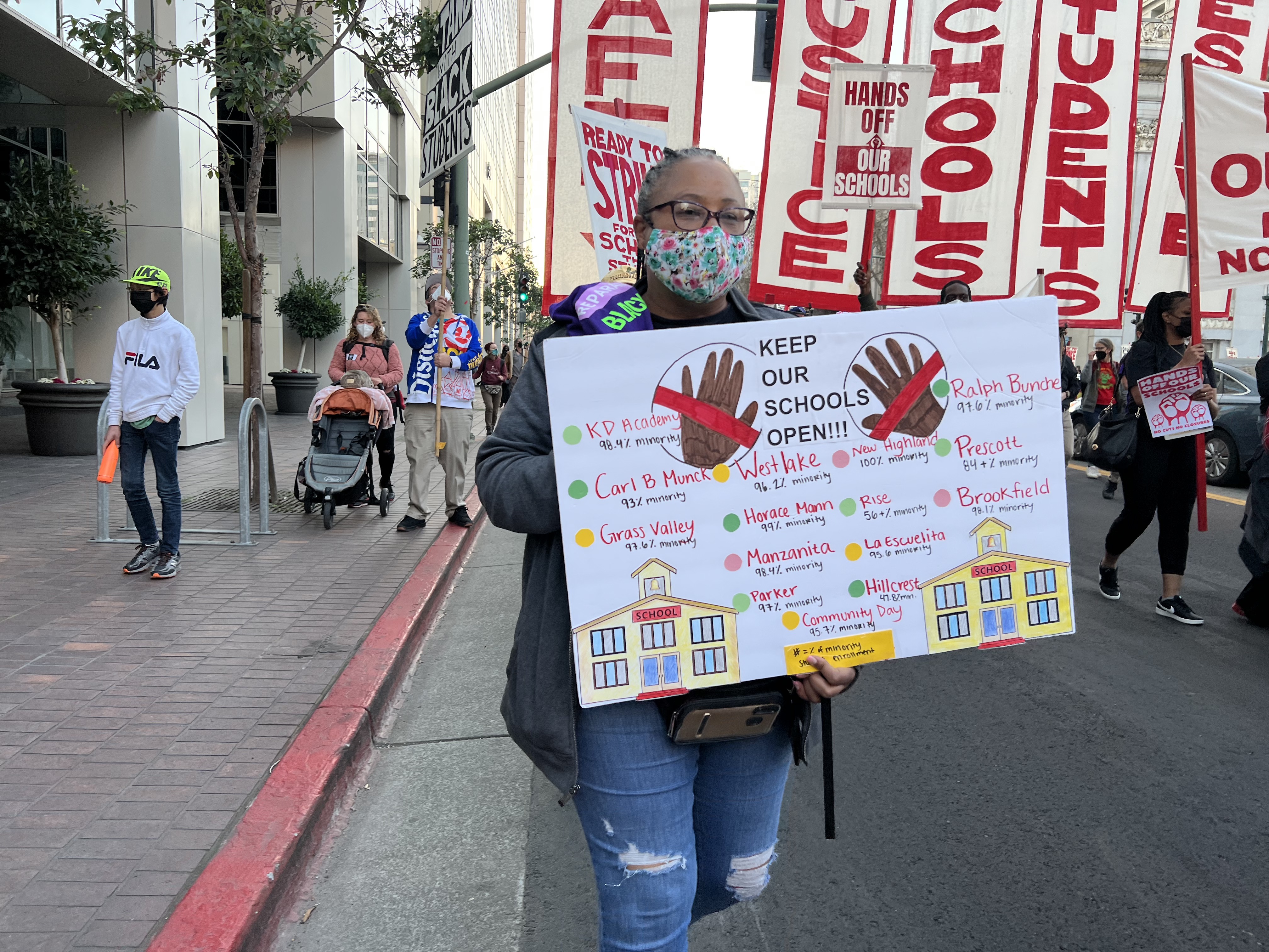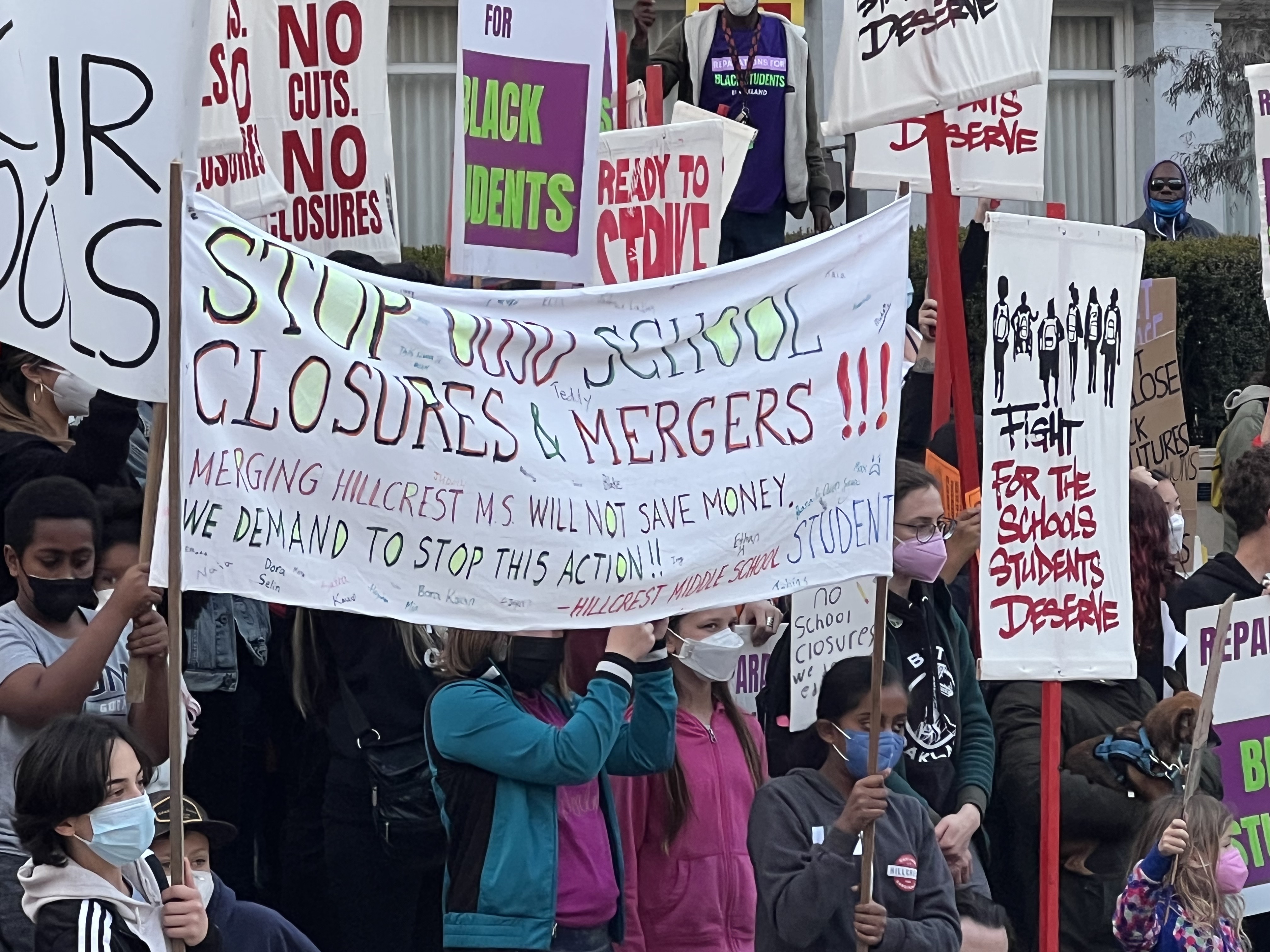 Hundreds of teachers, students and parents rallied and marched against the proposal to shut and merge many schools in the Flatlands in Oakland. These schools have large number of Black and Brown students and this is taking place as the state has a budget surplus of 45.7 billion dollars.