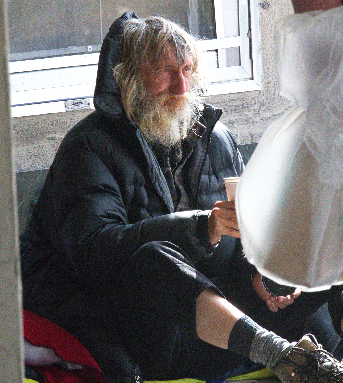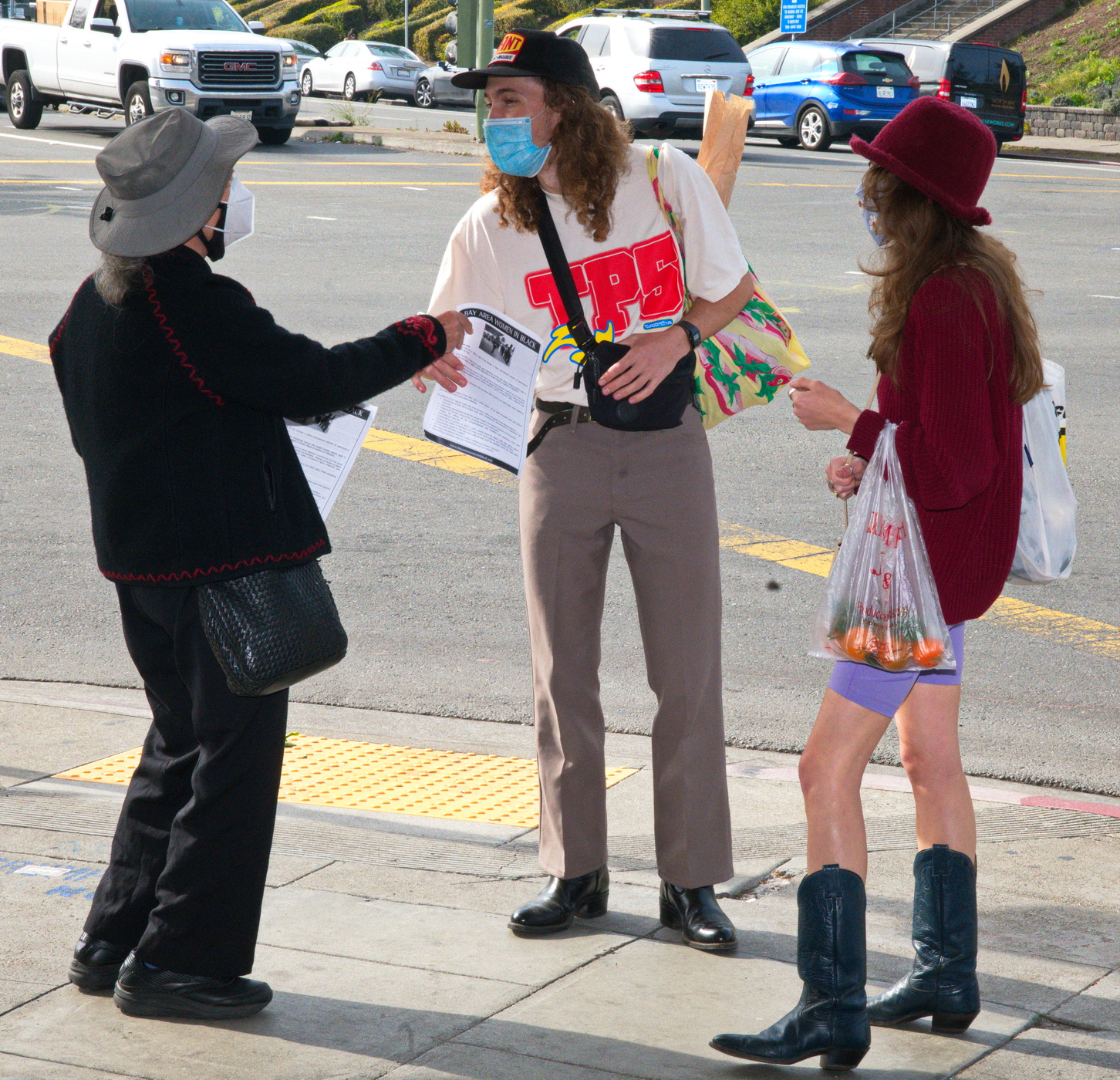 Seniors were out in full force. Some shoppers from the adjoining farmers market came over to see. An unhoused man who had been sleeping in the theater's entrance joined the participants.