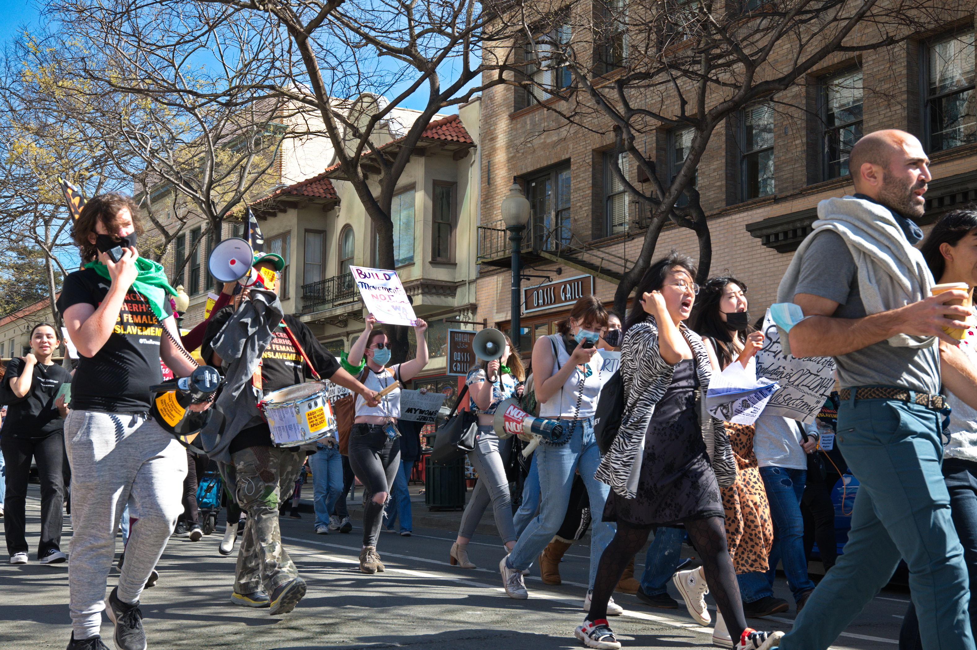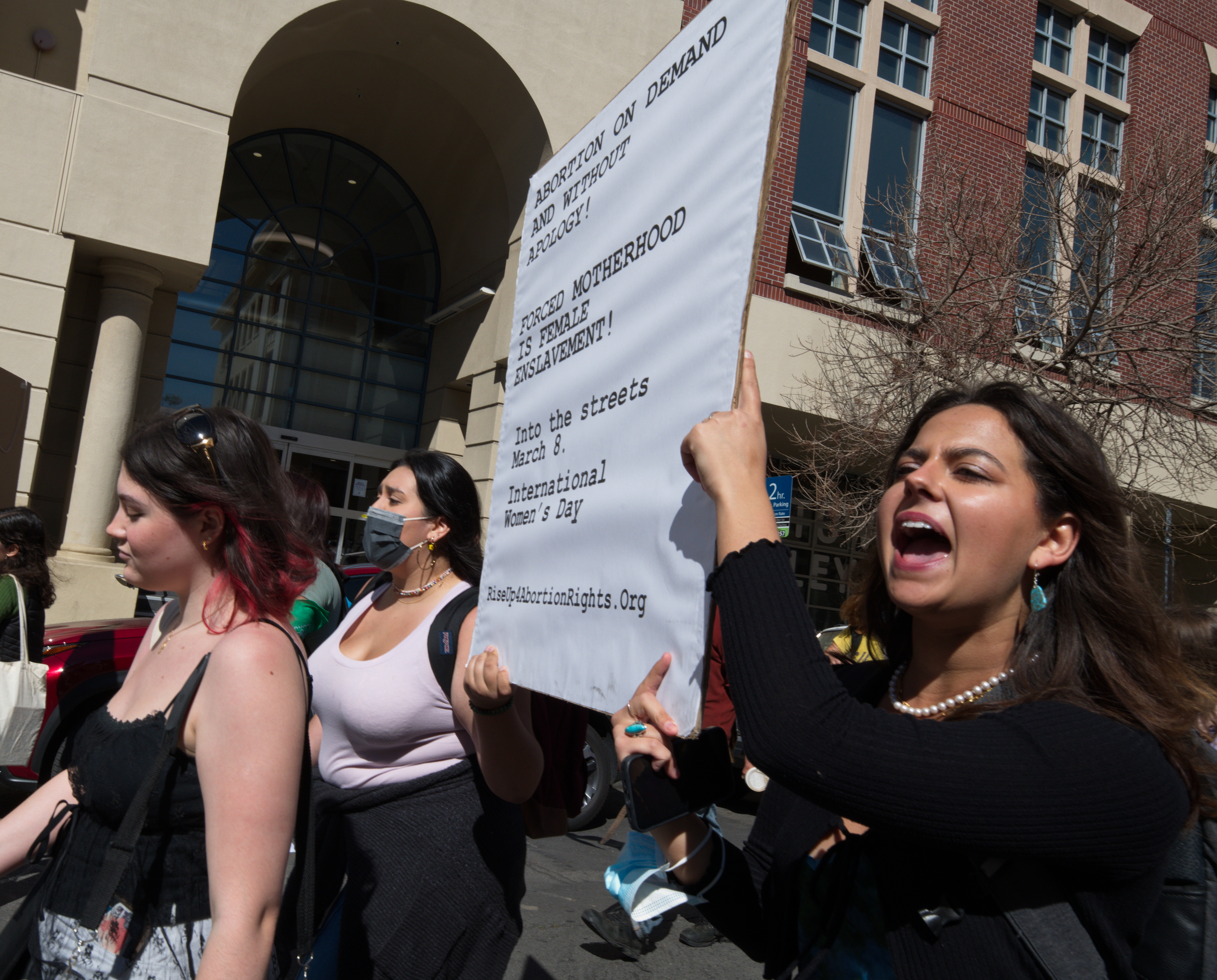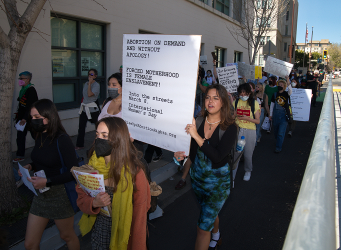 With the Supreme Court poised to overturn or substantially curtail Roe v. Wade, demonstrators young and old gathered on March 8 at the University of California’s Berkeley campus to demand the legal right to abortion. The protest was in response to a national call for action by the new movement, riseup4abortionrights.org. The march started in Sproul Plaza and ended in MLK Civic Center Plaza where organizers announced: "This was just the beginning! Next national day of action is April 9. Join us!"