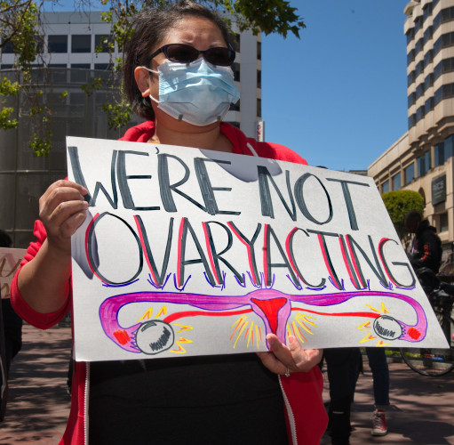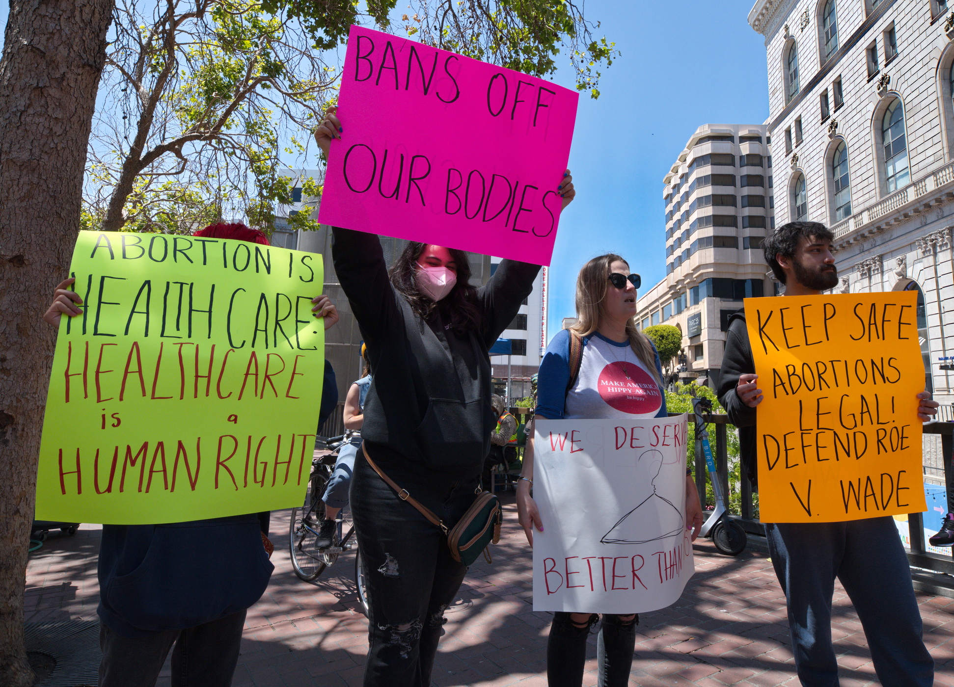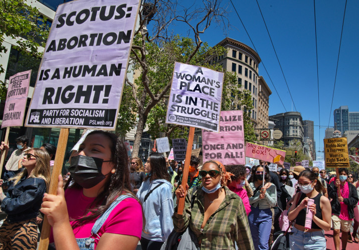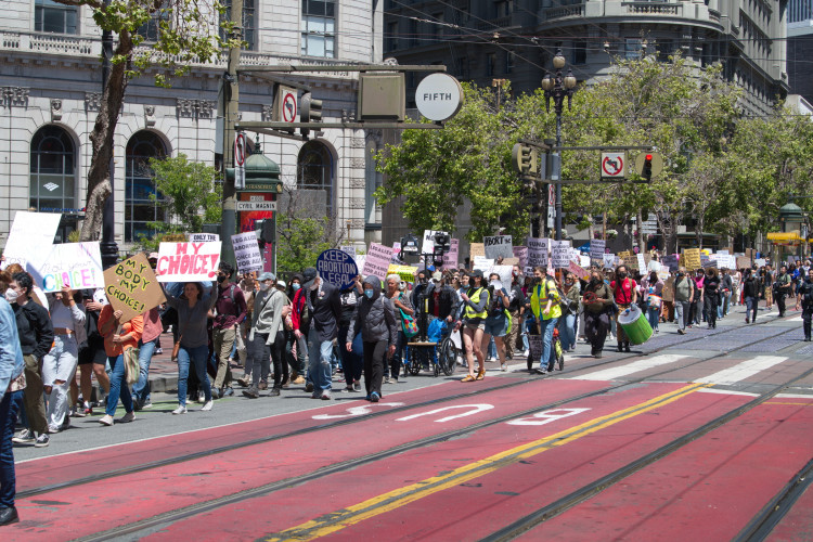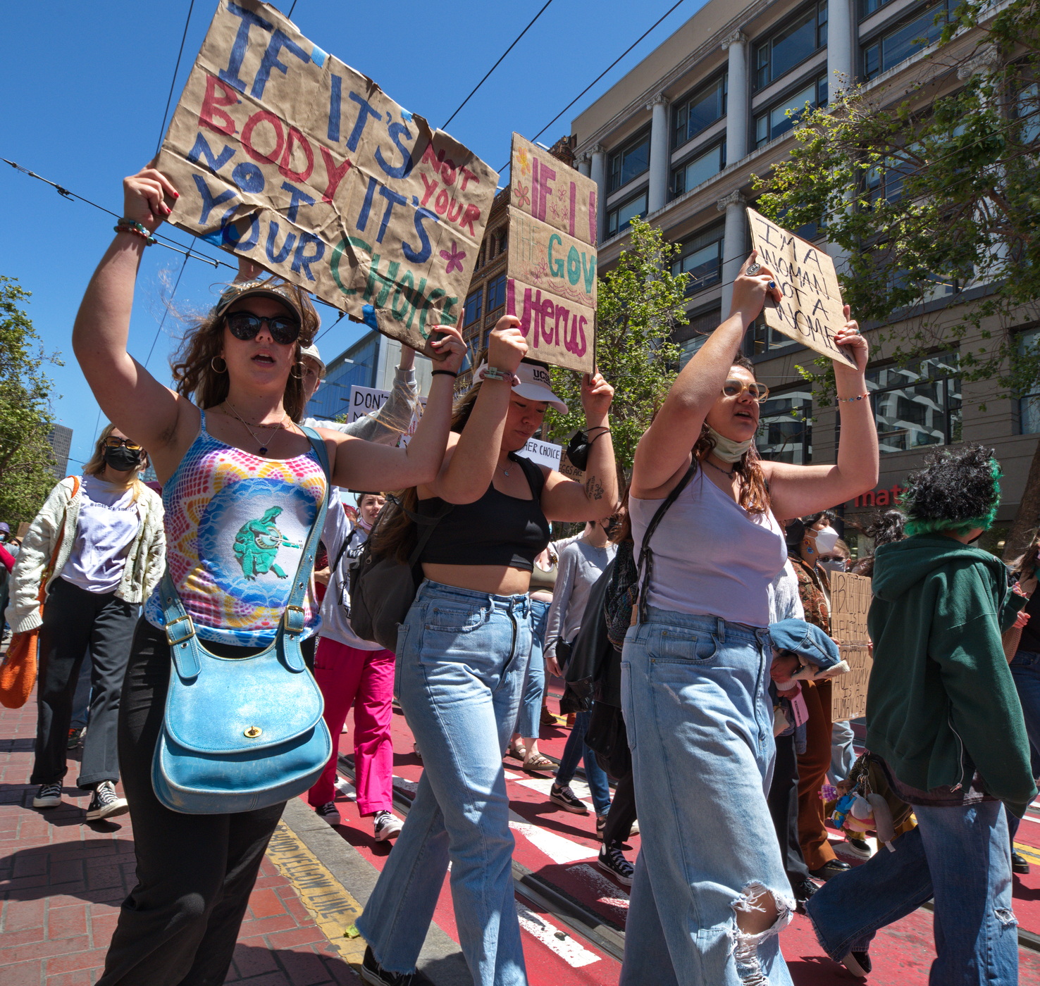 Fury at the Supreme Courts plan to gut women's rights is building. Women and supporters of women's health rights rallied on May 7 at Powell and March in San Francisco in an action called by the Party for Socialism and Liberation.Speakers blasted the Supreme Court for its evident plan to repudiate fifty years of settled law established by Row vs Wade. With signs and slogans proclaiming their determination to resist, they marched down Market Street, last seen heading south in the mission district at Valencia and 16th.