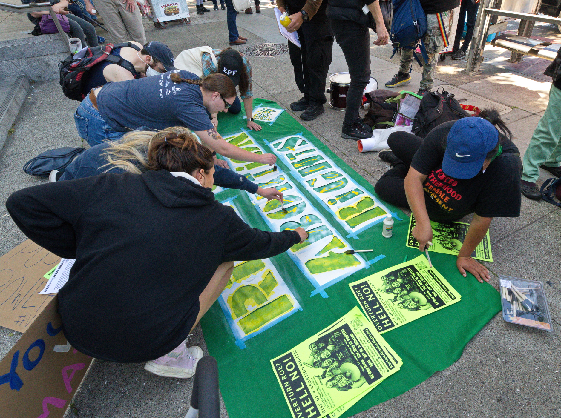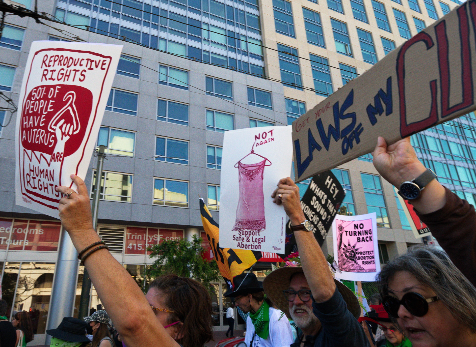 At 1pm another rally, organized by RiseUp4AbortionRights, began at 24th and Mission St. They marched up Mission, briefly intersected a march for Palestinian rights, then continued on to Dolores Park.