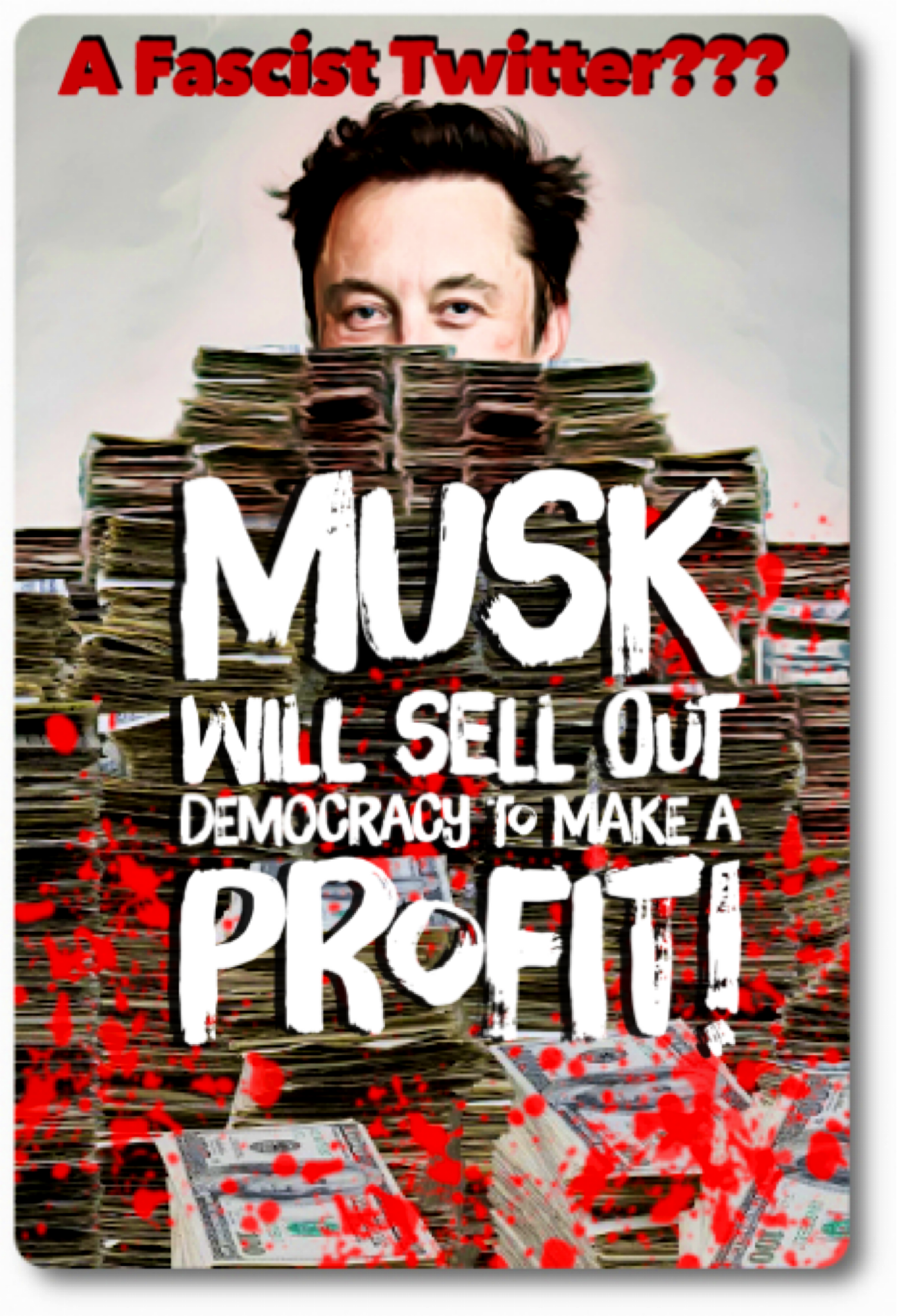 We need to stand up against this racist and union buster who wants to take control of this powerful global social media platform to propagate his anti-Black, anti-working class ideology. The danger of a racist fascist USA is growing. We need a working class political alterative that defends labor and democratic rights and workers should run these platform that they built.