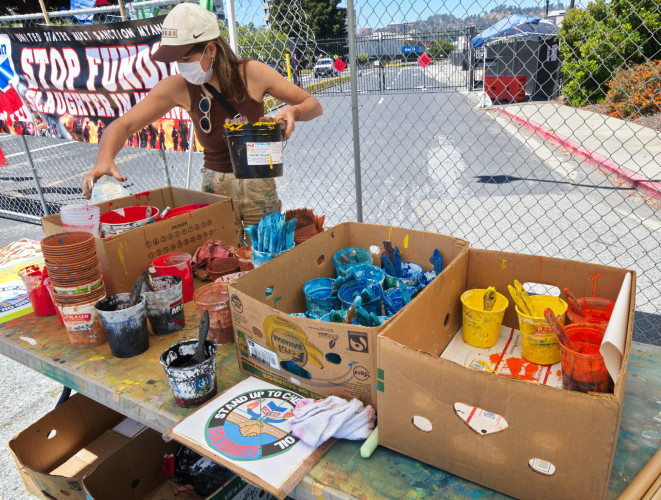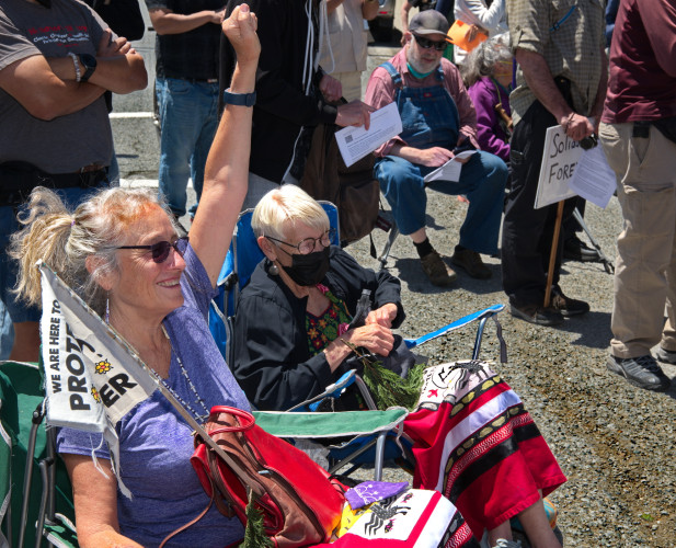 Demonstrators painted a large ground mural that said "STAND UP TO CHEVRON BIG OIL". There were many large banners and flags. Speakers include Native Americans, local politicians and Steven Donziger, recently out of prison due to his years of combat against the corporate oil giant. He spoke about how powerful corporations threaten democracy.