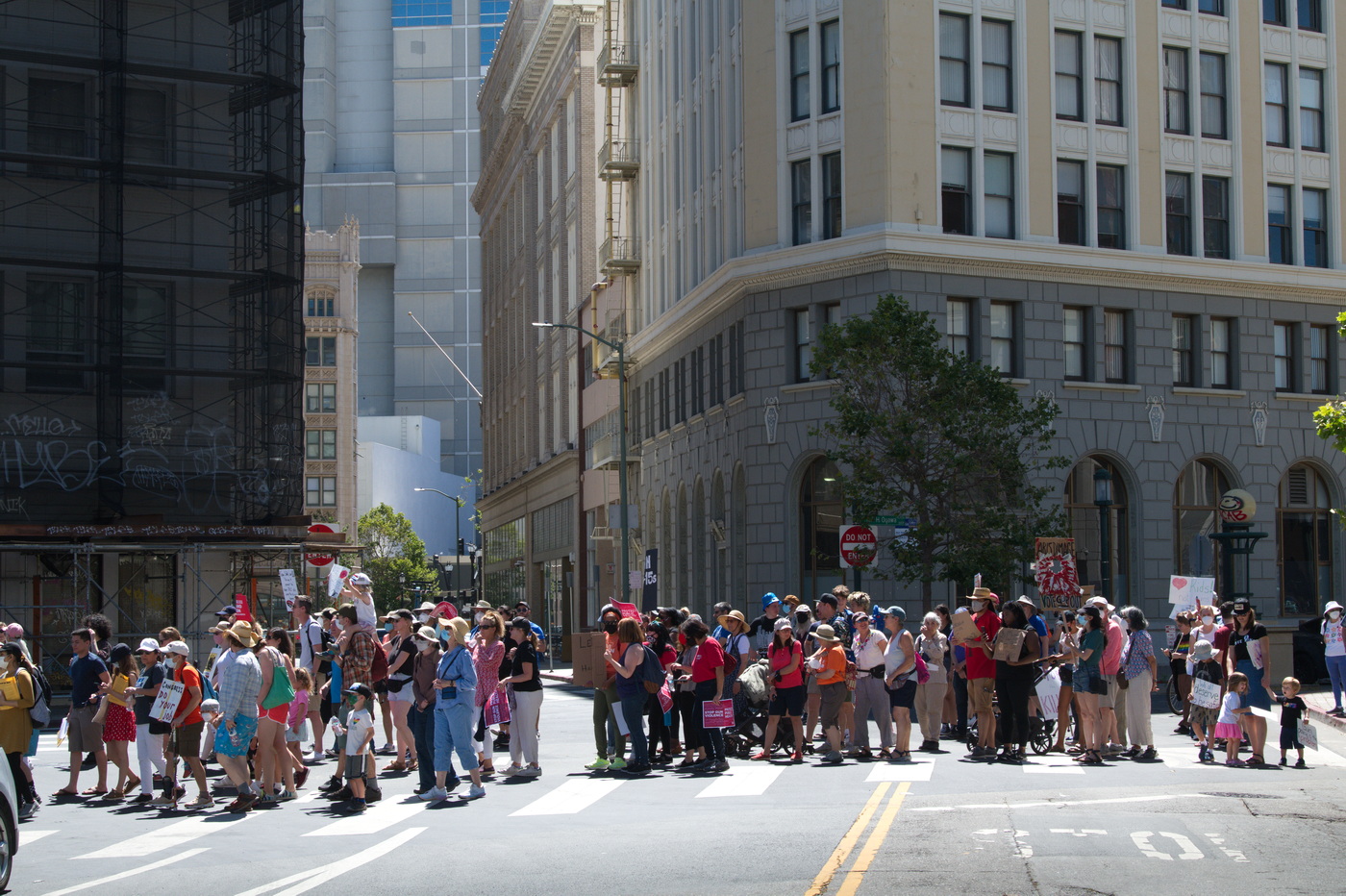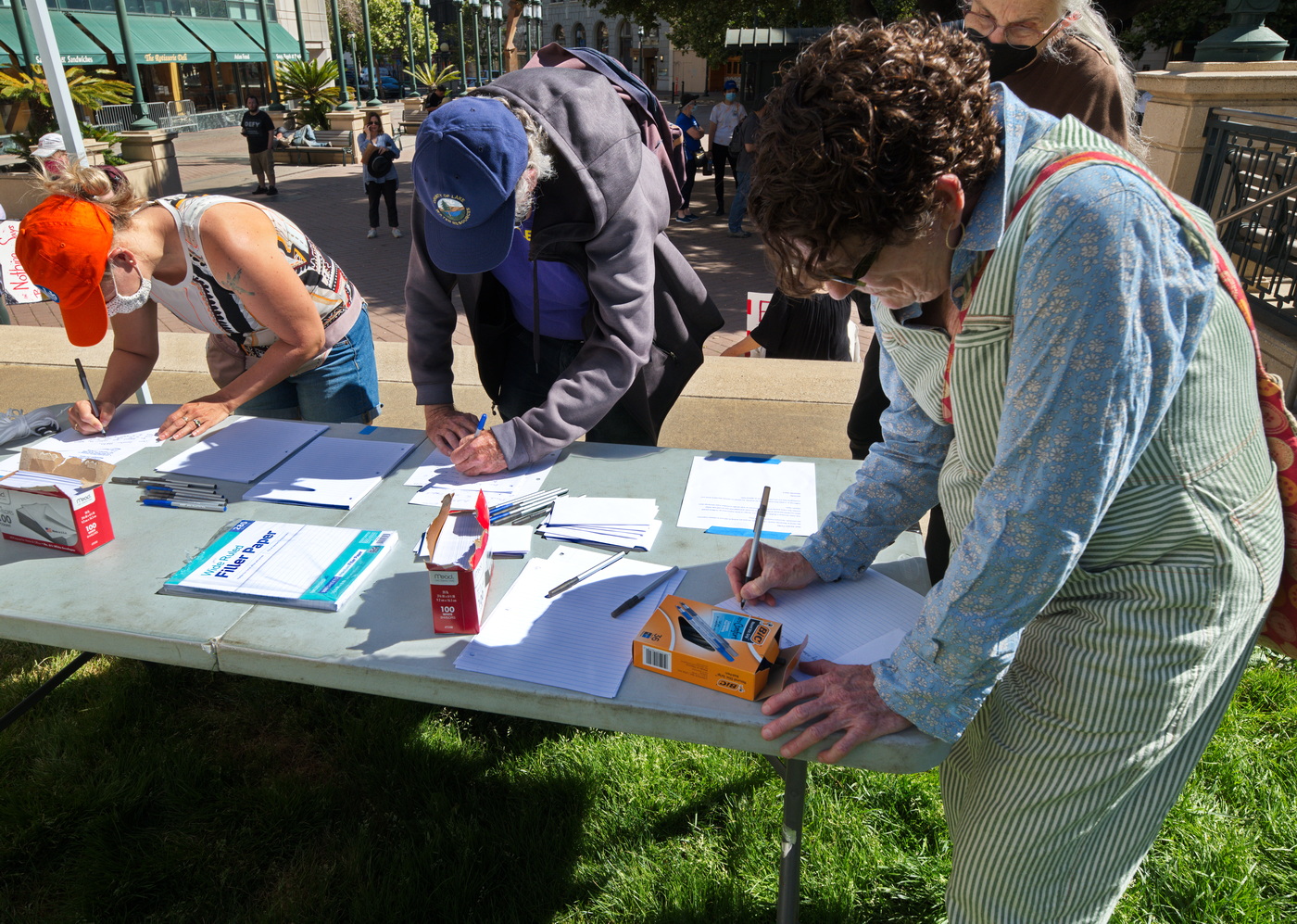 Over 300 people braved this Saturday's mid day heat at Oakland's Frank Ogawa Plaza to participate in the nation's many March For Our Lives demonstrations. The nationally coordinated actions took place to protest the GOP enabled crisis of gun violence sweeping the country.Because of recent slaughters of school children, many young people and teachers were there to speak and march. Tables had been set up for participants to make their own signs.