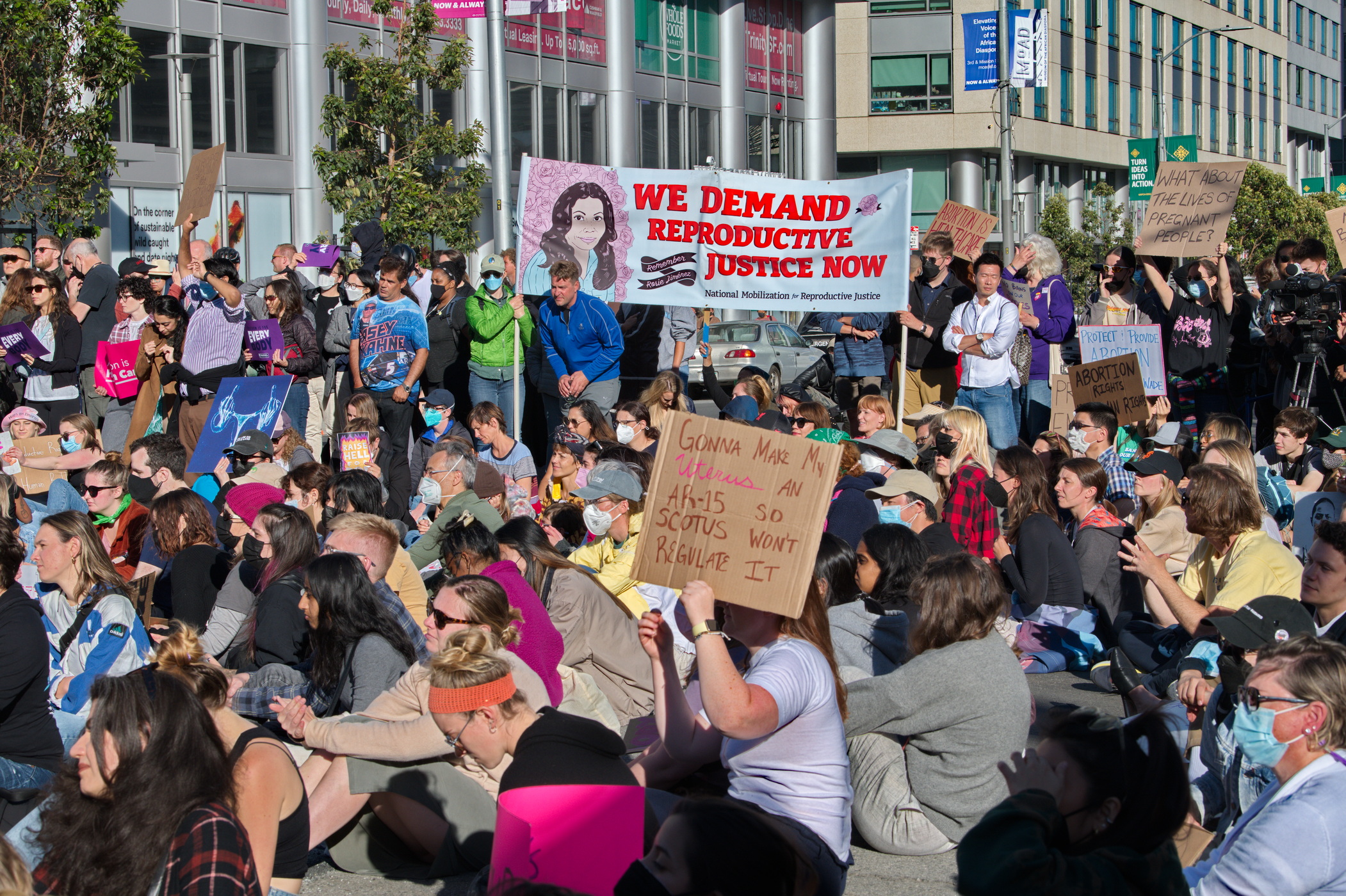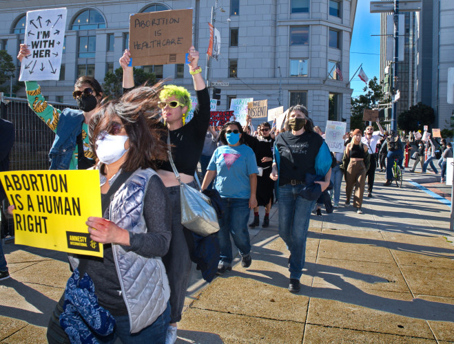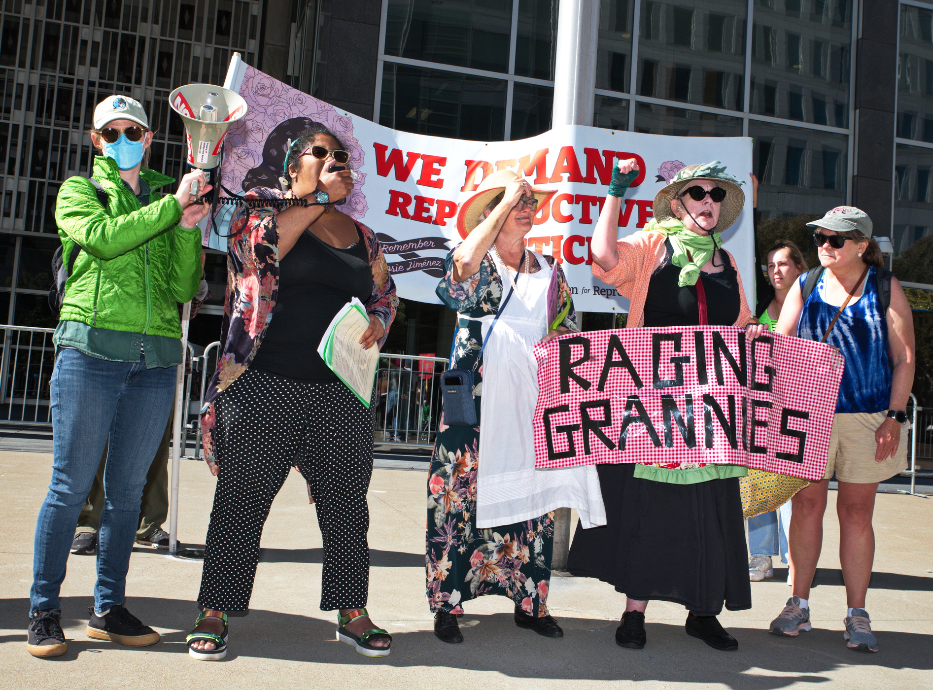 On the day that ideologue judges on the Supreme Court continue to dismantle U.S. democracy, angry crowds descended on San Francisco's Federal Court building and City Hall.What started as separate demonstrations with frequent activists such as the Raging Grannies and Leftist groups at the Federal Building on Golden Gate Street and mostly young people in front of City Hall became a large sit in of thousands on Market Street. A march up to the Embarcadero followed.