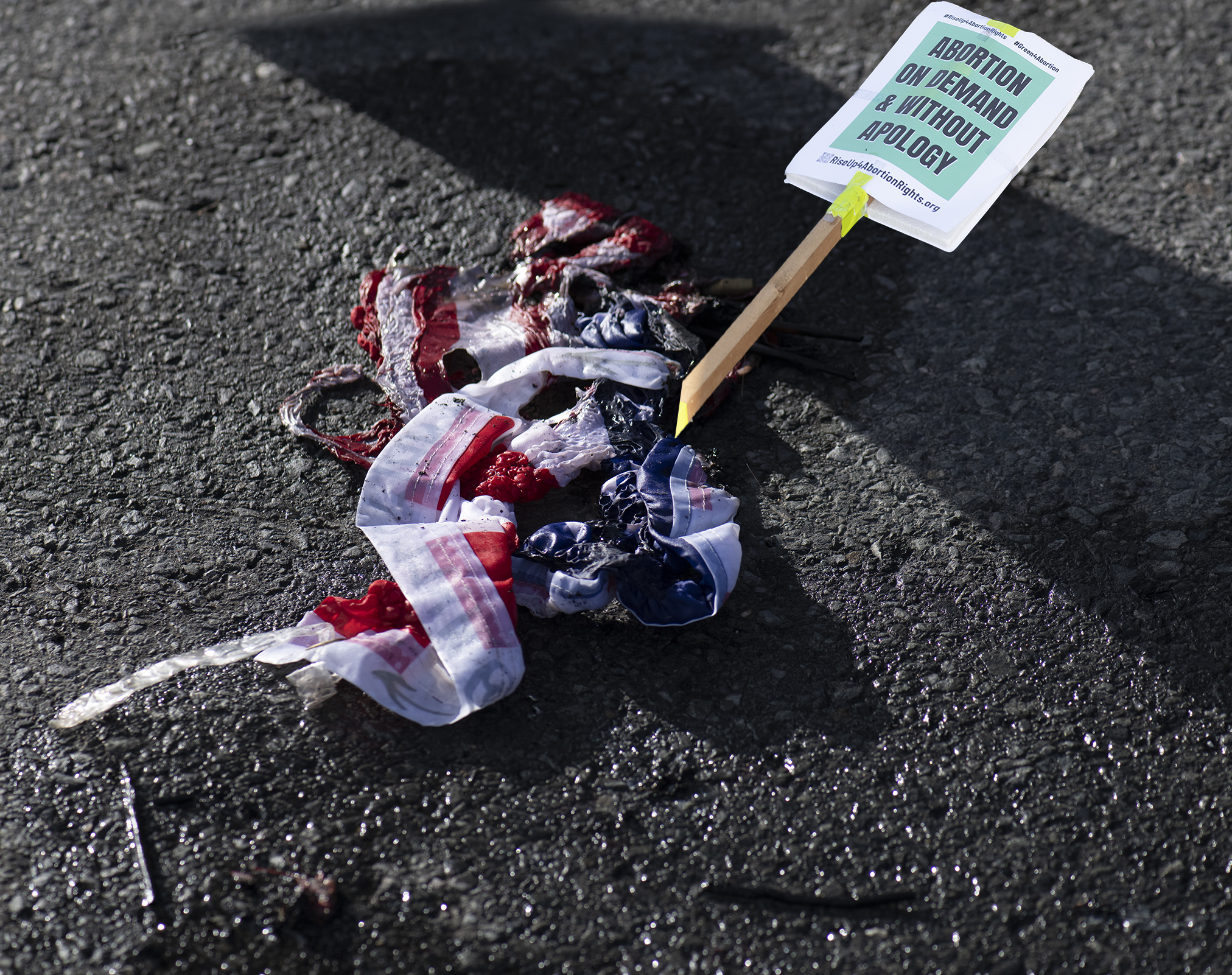 July 4th - 10th saw more protests for abortion rights/reproductive justice in the SF Bay Area in SF, San Jose and Alameda. Photos here are from the July 4th demonstration of about 800 people who rallied at the Ferry Building in San Francisco, then marched to Pier 39 where some burned an American flag.