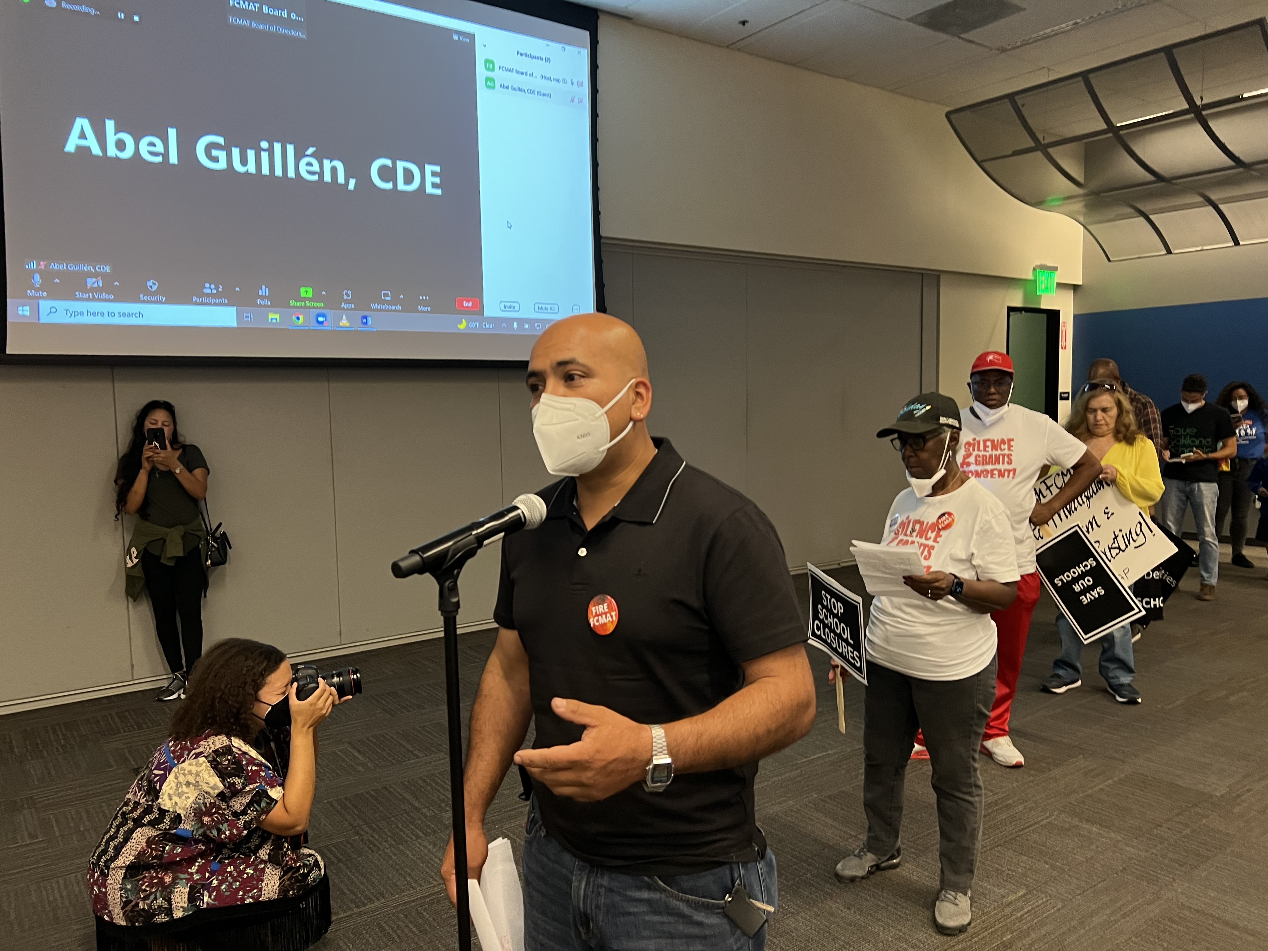 FCMAT is a “non-profit” funded by the State of California which they said had been used as a tool to destroy public schools in Black and Brown working class communities while expanding charters. The FCMAT tried to keep the community and labor members out but were forced allowed them to speak and later were forced too adjourn the meeting after speaker demanded answers. The FCMAT board is made up mostly of superintendents from rural white districts and also charter representatives. State Superintendent of Public Instruction Tony Thurmond has backed FCMAT allowing to push forward with the closure of 11 schools in Oakland and around the state.