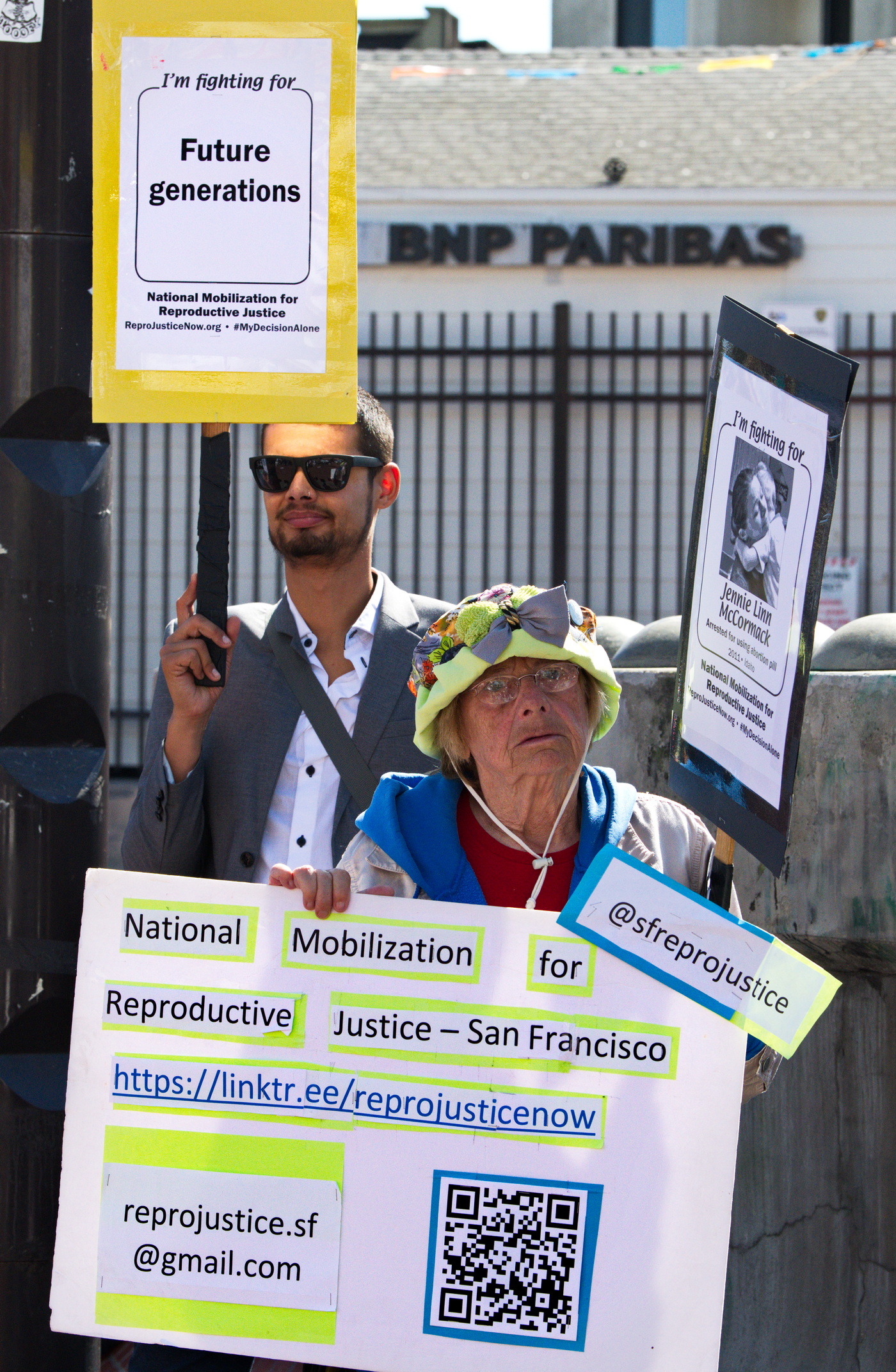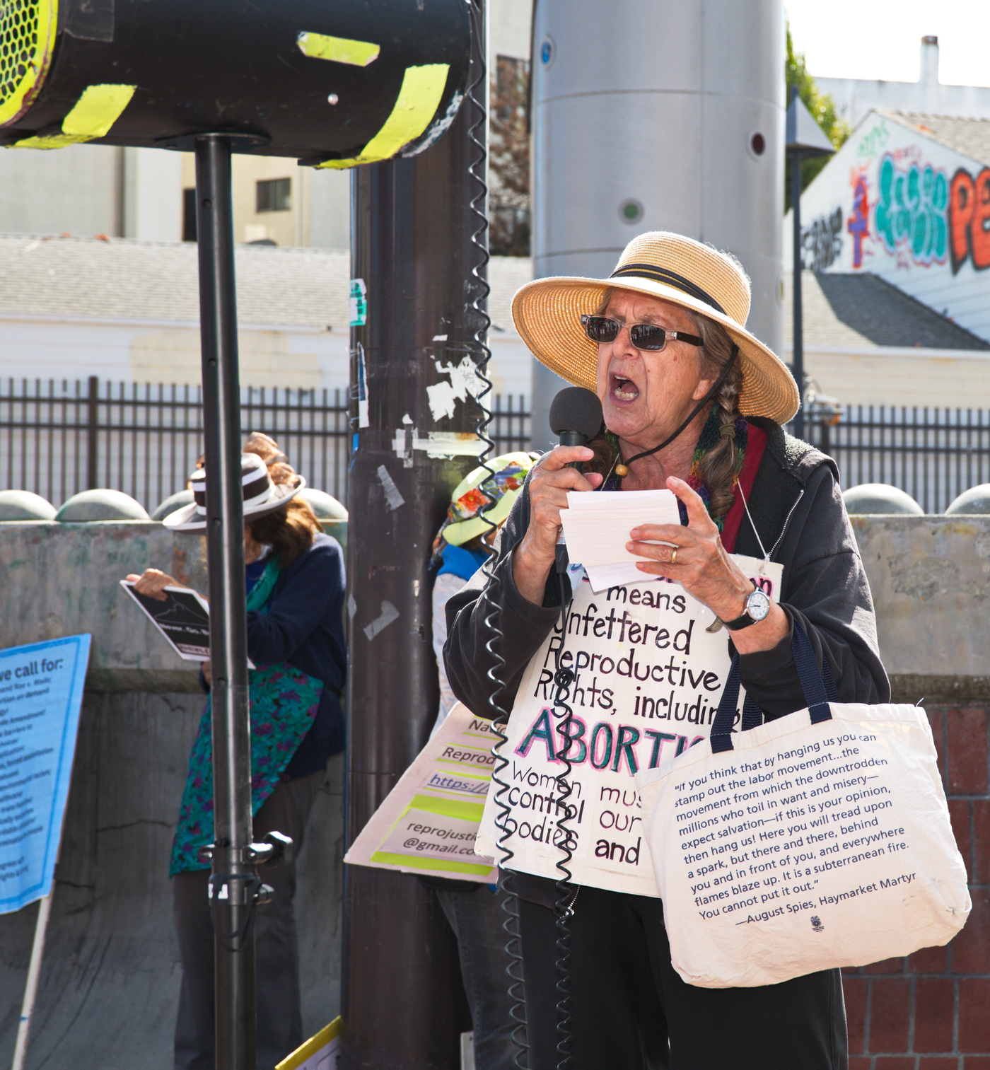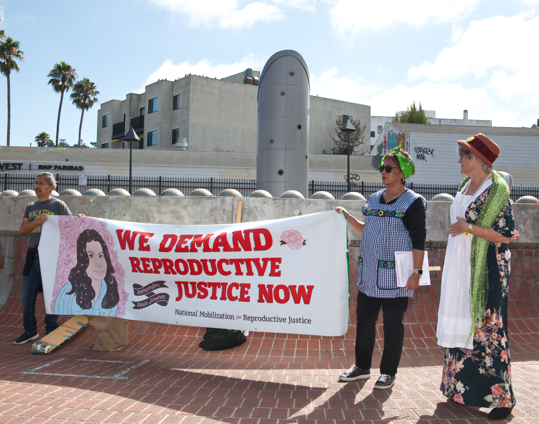 The event included speeches, music and singing. Sponsors were National Mobilization for Reproductive Justice-SF, Raging Grannies Action League, Bay Area Freedom Socialist Party. Endorsers included the Red Berets and Worker’s Voice.