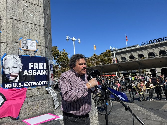 In conjunction with an action on October 8, 2022 at the British Parliament to free Julian Assange, an action took place on the same day in San Francisco to demand his freedom. Thousands of people surrounded the British parliament to oppose his extradition to the United States for US charges of espionage.