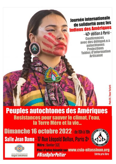 In Paris, today's Indigenous solidarity event focuses on freedom for imprisoned Leonard Peltier and honors Indigenous rights around the world.
