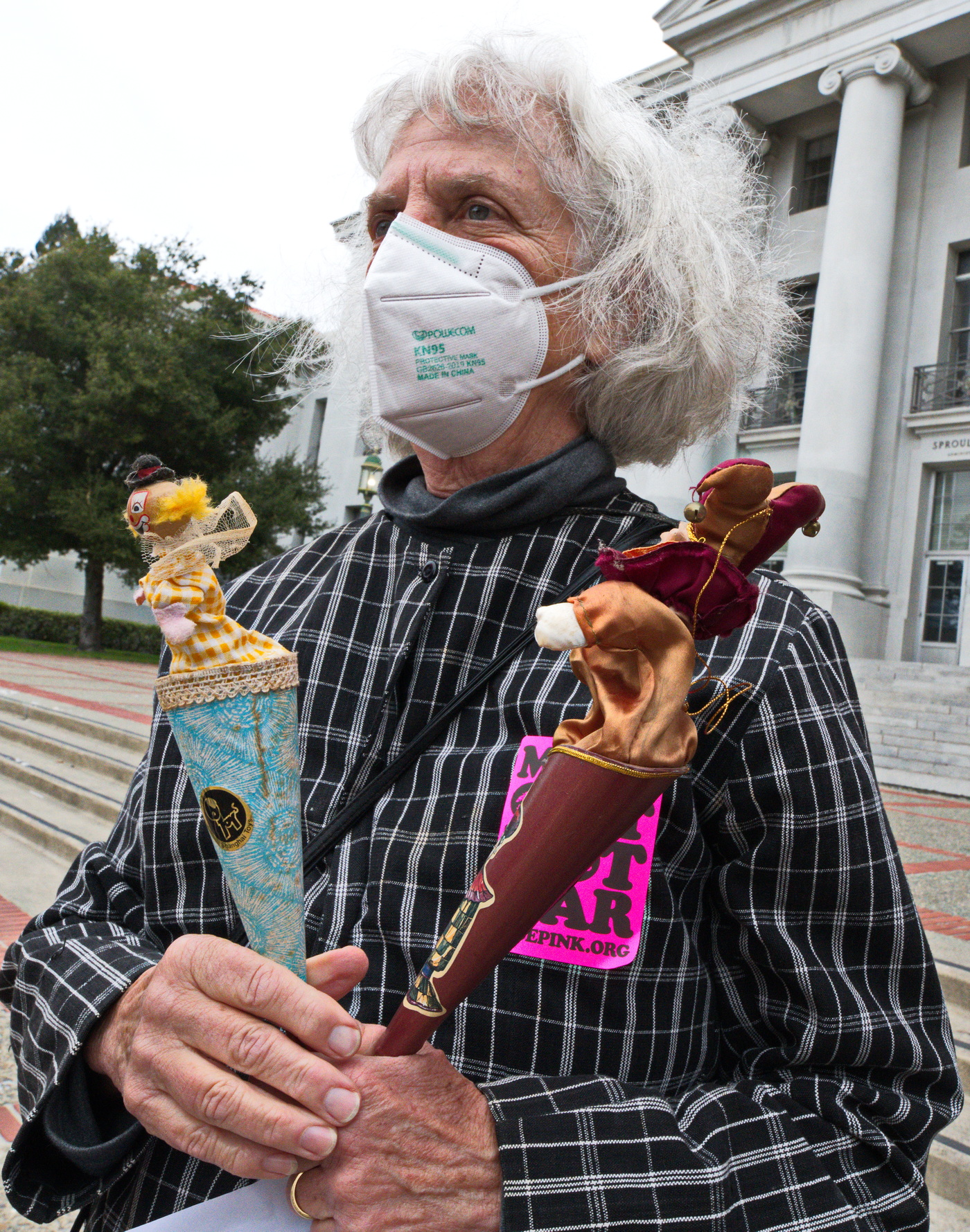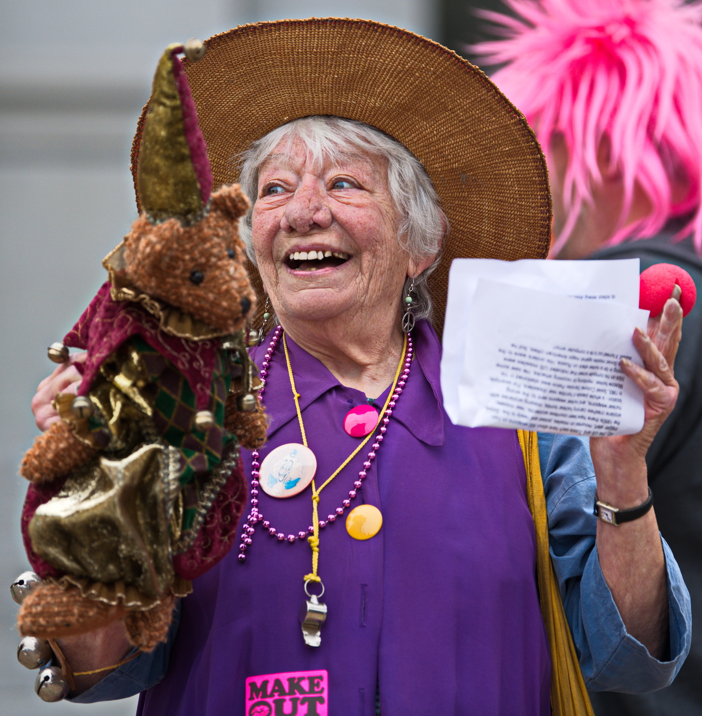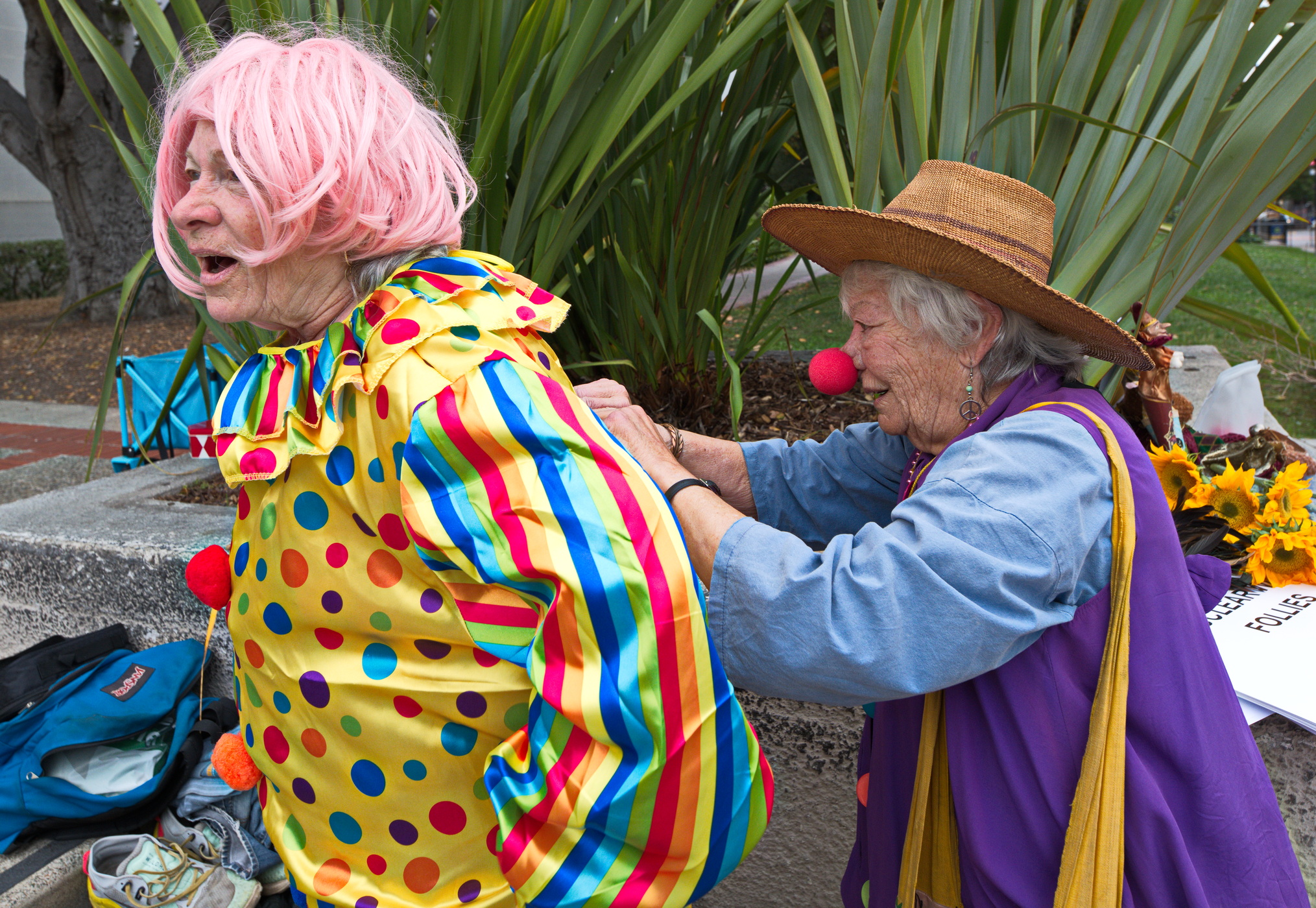 Anti war activists in clown costumes and funny hats dramatized the folly of even THINKING about starting a nuclear war.With "Duck and Cover" drills, die-ins and simulating a Nuclear Winter with "dead" birds falling on the ground, they showed how insane and dangerous the situation is between Russia and the USA. The two most heavily armed nuclear countries are playing a game of "chicken" with the future of life on earth.