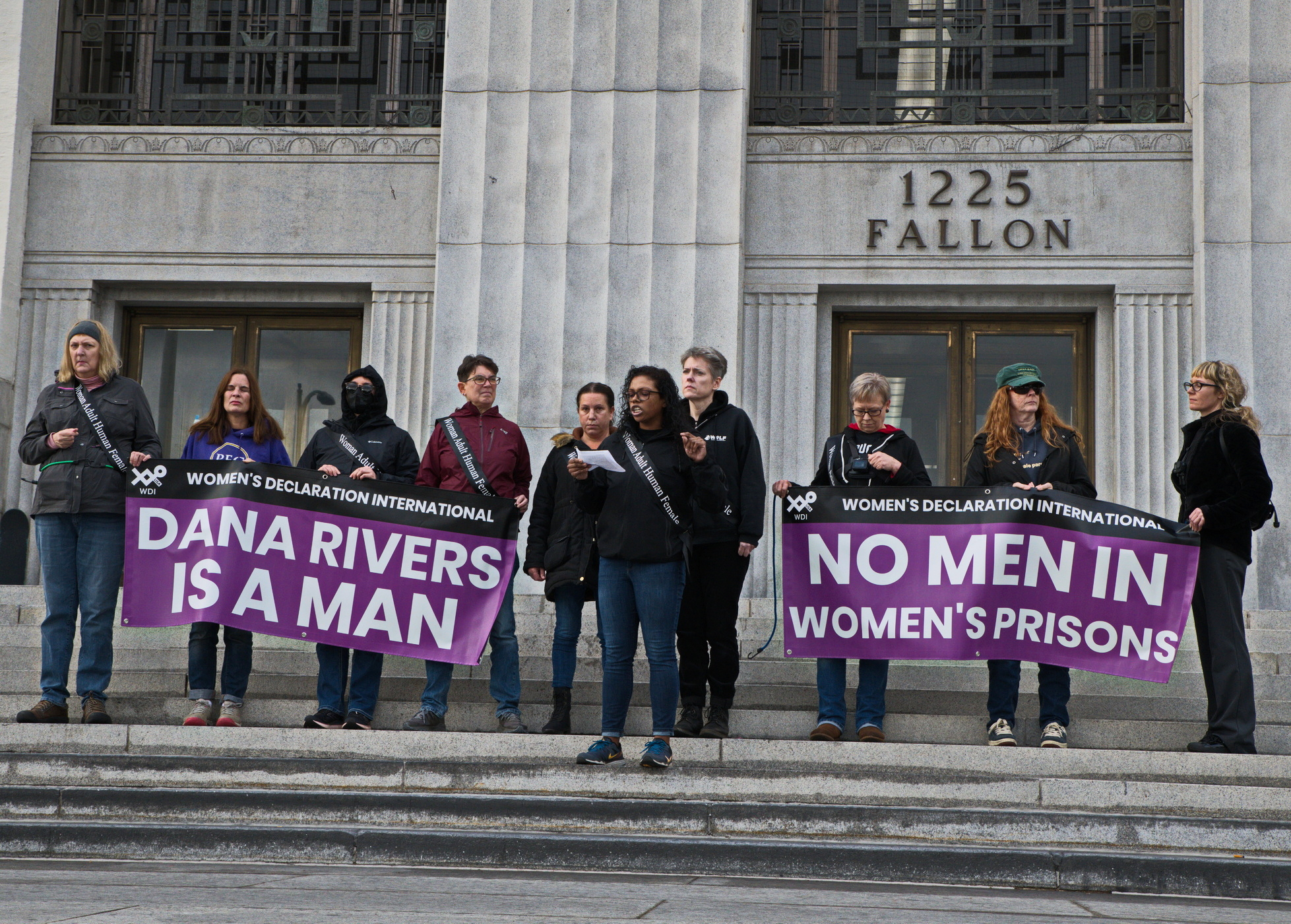 TERF stands for Trans Exclusionary Radical Feminist. In spite of the lefty sounding verbiage they are Right Wing haters of gender diversity and have links to far-right Republicans (is there any other kind?).Their issue du jour is "men" in women's prisons. They held a Monday demonstration at Oakland's Rene Davidson Courthouse in front of a crowd of zero sympathizers.