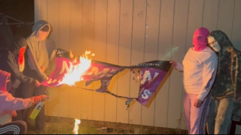 These foolish, hateful, pathetic losers moved their group once again and set up camp in front of the altar memorializing all the lives lost to police violence, which comrades installed after the George Floyd uprisings of 2020. The same altar that, one week previous, we held a vigil for the victims of the Q Bar murders and those who have resisted, died, and been imprisoned fighting for their freedom in Iran.
