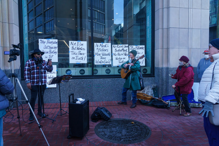 Union and labor activists facetiously called for Elon Musk to leave earth for the red planet with a protest at Twitter headquarters in San Francisco on December 19th.