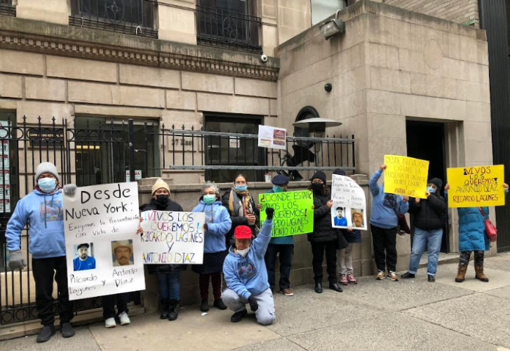 EN NUEVA YORK, MIGRANTES PROTESTARON EN EL CONSULADO DE MÉXICO PARA EXIGIR LA APARICION INMEDIATA CON VIDA DE RICARDO LAGUNES Y ANTONIO DIAZ