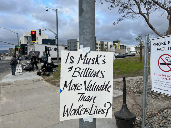 Frustrated protesters outside Fremont Tesla factory want to see CEO Musk put behind bars