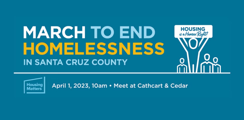 The March is an opportunity for Santa Cruz County neighbors and friends to gather, connect and together give voice (and steps!) to end homelessness. By marching together on April 1, we will unite our community and show solidarity with our neighbors experiencing homelessness. The event will also elevate our vision for the future, building momentum for solutions to combat homelessness here in Santa Cruz County.