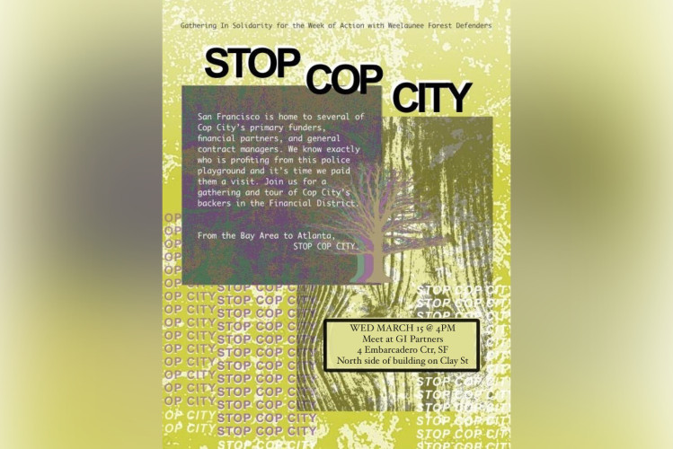 San Francisco is home to several of Cop City’s primary funders, financial partners, and general contract managers. We know exactly who is profting from this police playground and it’s time we paid them a visit. Join us for a gathering and tour of Cop City’s backers in the Financial District