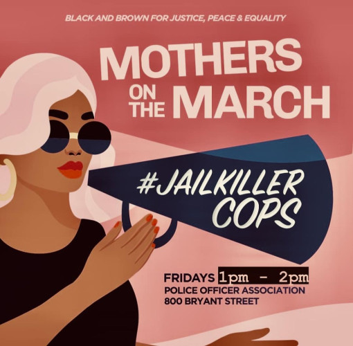 We stand with signs and banners and chalk the sidewalk, bringing attention to the crimes of the SFPD.