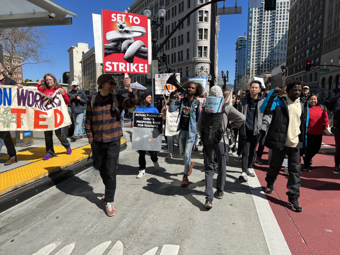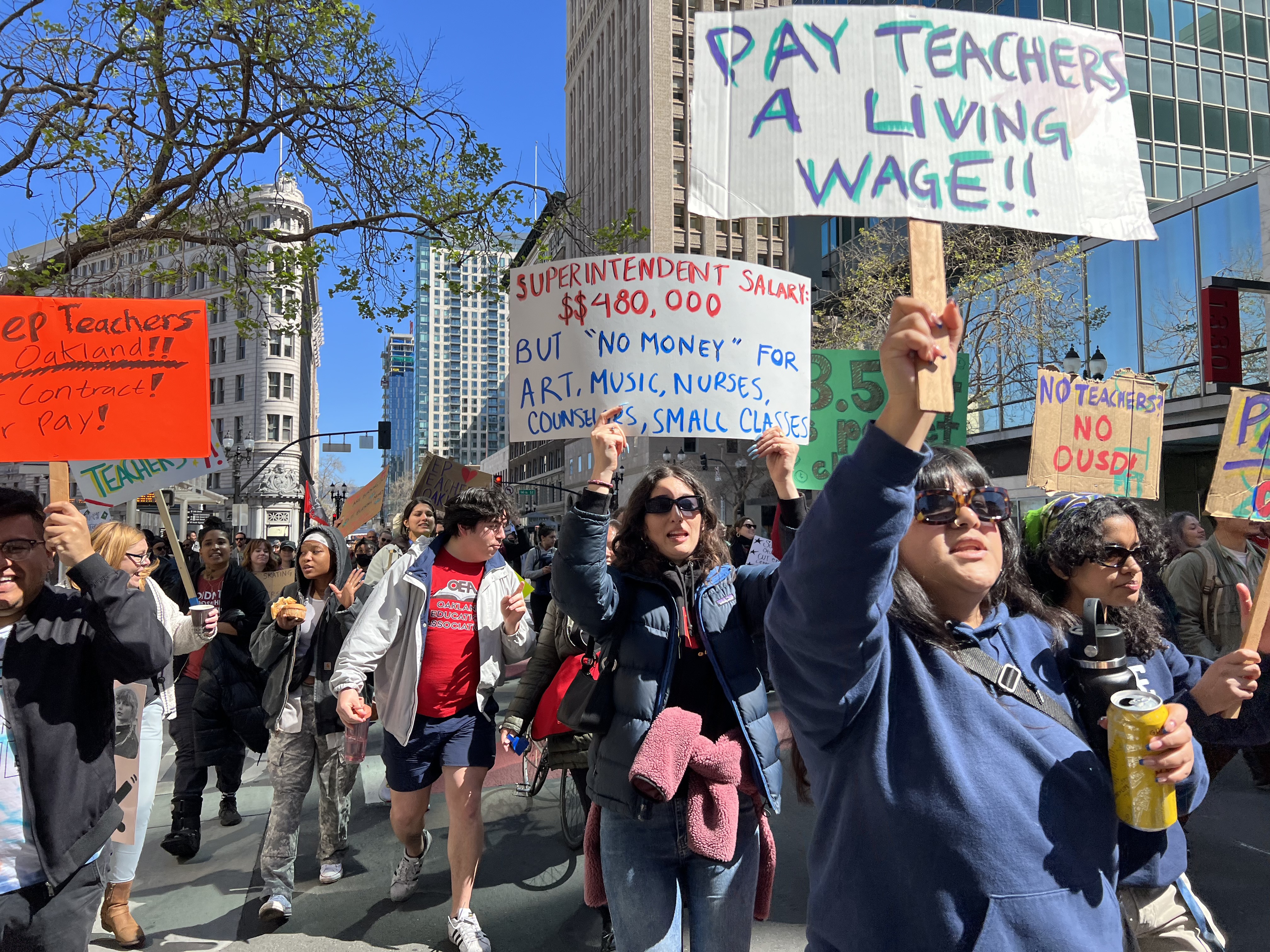 Hundreds of teachers, community members and unionists joined together on March 24, 2023 to rally and march for public education and for a contract that will protect the schools in Oakland. The wildcat was a challenge to the union busting tactics of the district management.