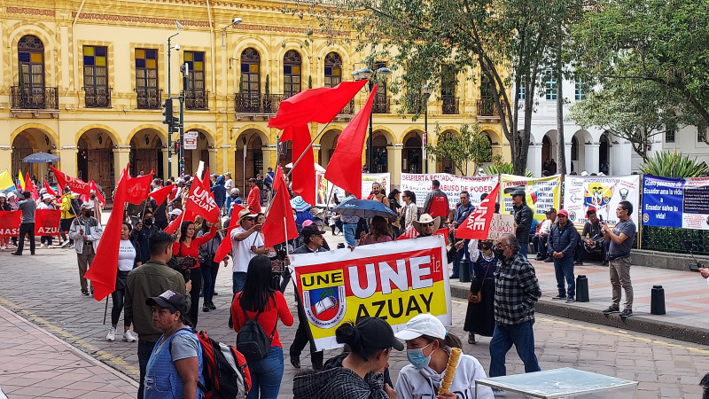 Leading the march was a contingent from the Unitary Front of Workers, Azuay Province (FUT), which is part of the largest labor union federation in Ecuador. “I agree with the removal of the President and think that he is not equipped to lead the country,” stated Rubén Baculima, President of the FUT of the province of Azuay. “This march is important because it continues the process of vindication of workers' rights. It is a march to demand from the government public policies for their benefit. We are submerged in insecurity. We don’t have the minimum necessary to live in optimal conditions since there is no health and not even quality education,” said Baculima.