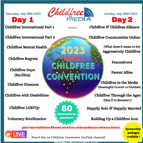 The Childfree Convention 2023 will be convening virtually on Saturday, July 29th, and