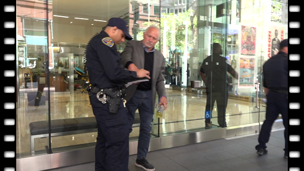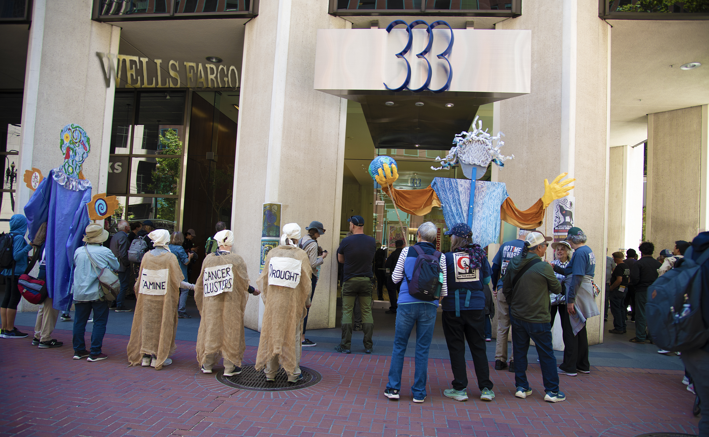 Six environmental activists locked themselves together and blocked the entryway inside Wells Fargo Worldwide Headquarters on July 14. According to Extinction Rebellion SF Bay Area, "Wells Fargo leaders opposed a shareholders resolution to stop funding fossil fuel oils so we blocked their corporate office and threw them a block party."