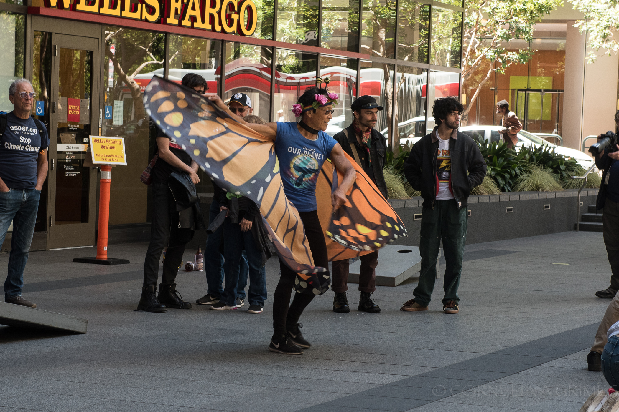 Carnival games, impassioned speakers, mural creation, street theater and a singalong with the Raging Grannies....all part of a continued push from activists to hold Wells Fargo accountable for their reckless funding of the fossil fuel industry. At world wide headquarters it was definitely NOT "business as usual" on July 14.