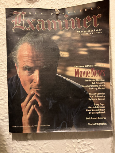 Photo of the San Francisco Examiner Magazine with filmmaker Rob Nilsson on the cover in September of 2000, from my Rob Nilsson collection tacked to a wall of my apartment.