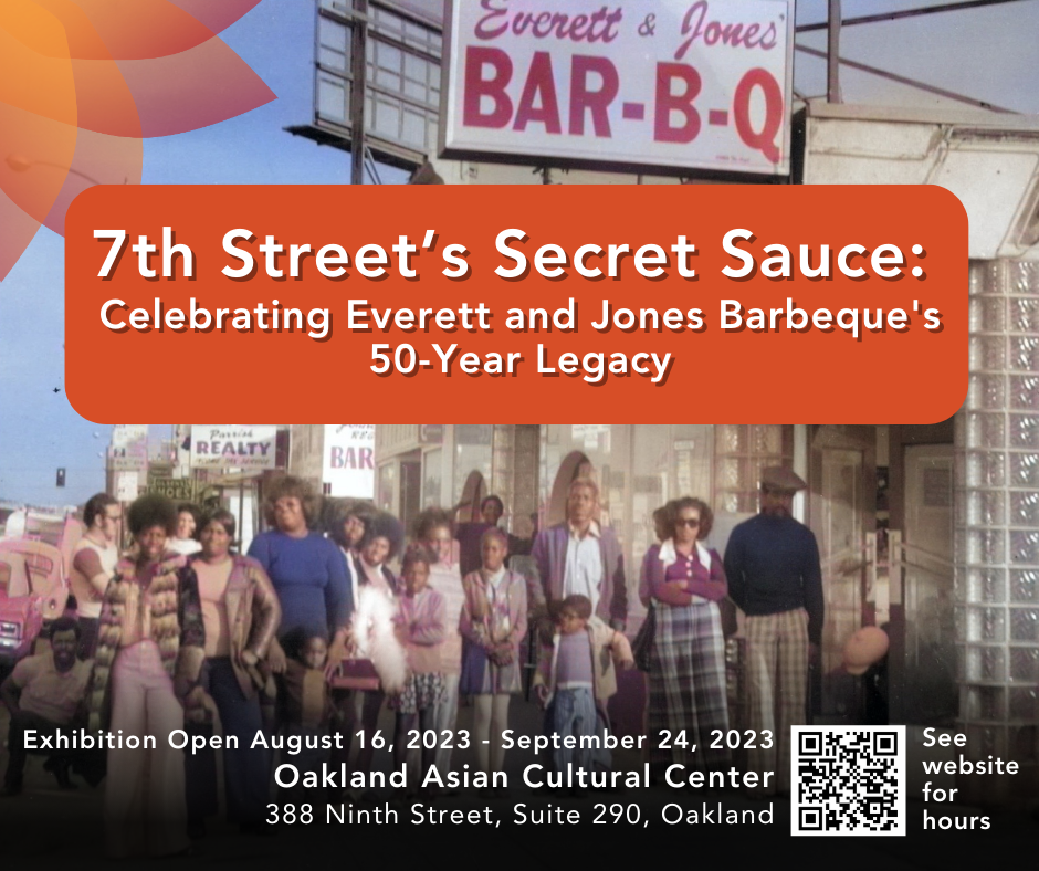 Join us in celebrating the 50-year legacy of one of Oakland’s most iconic businesses, Everett and Jones Barbeque. “7th Street’s Secret Sauce: Celebrating Everett and Jones Barbeque’s 50-Year Legacy” will invite the community to explore and experience the origins of Everett and Jones Barbeque through historical photos and family stories, showcasing the intergenerational and cross-cultural bonds that supported this business in its great success.