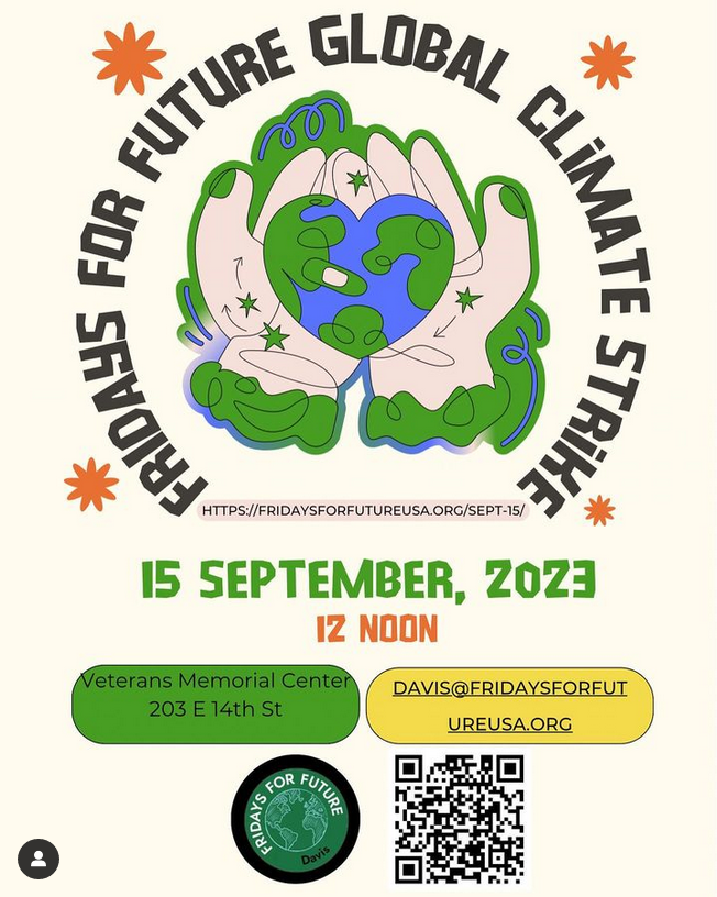 Join Fridays For Future Davis to protest the climate emergency at our Global Climate Strike march and rally on September 15th, 2023.