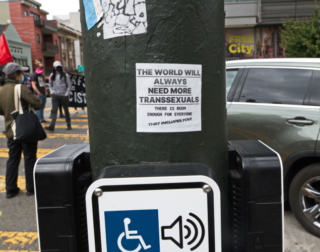 One arrest. The arrestee, a young person, apparently has now been released, following the excitement of taking over the streets in front of the Hilton Hotel that is hosting a TERF (trans exclusionary radical feminists) convention.