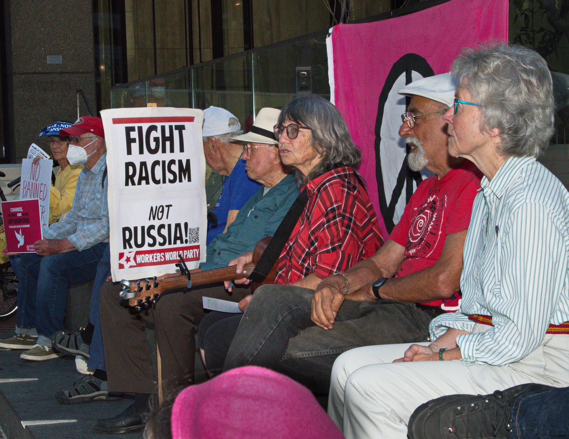 Participating groups included Answer Coalition, Code Pink, Veterans For Peace, The Communist Party, Women's International League for Peace and Freedom, Worker World Party, Party for Socialism and Liberation and Defuse Nuclear War.