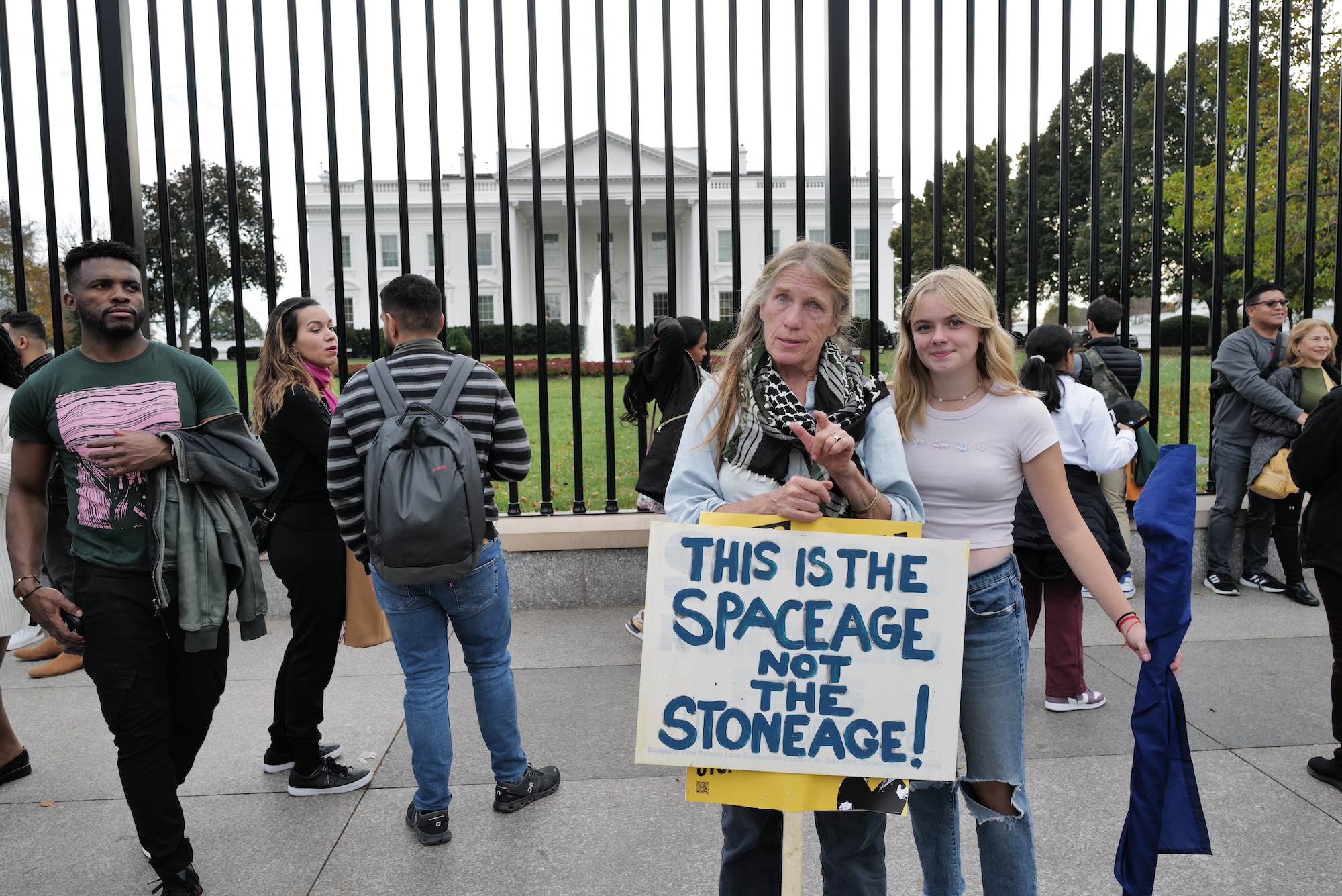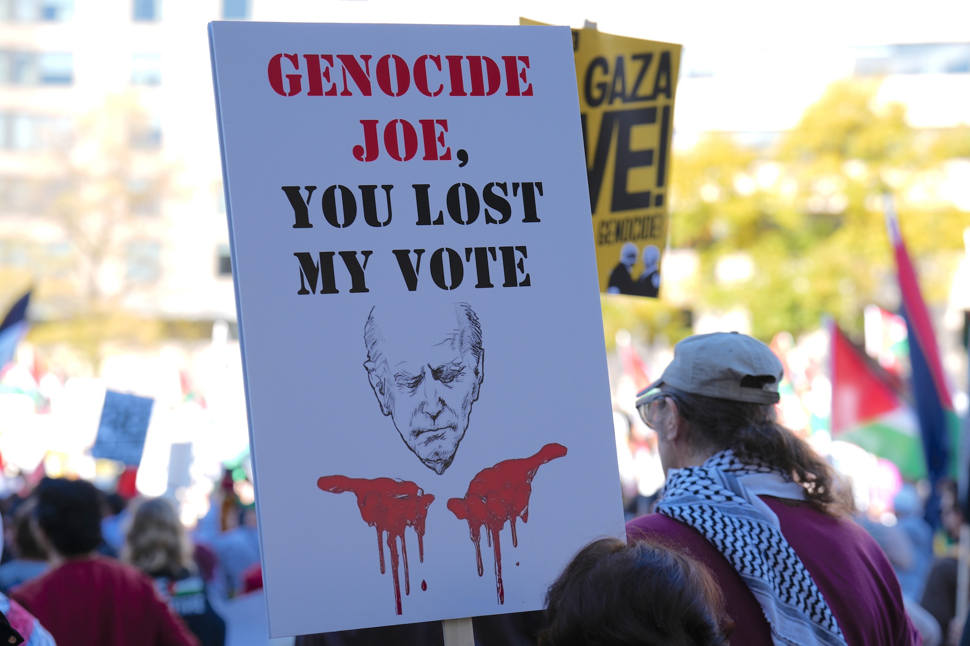 On Friday, Rep. Rashida Tlaib (D-MI), the only Palestinian-American in Congress, said in a video posted on X, “Mr. President, the American people are not with you on this one,” a major sentiment at the march echoed by many who bashed President Biden for contributing to the genocide of Palestinians and carried signs declaring their intent not to vote for him in the upcoming 2024 presidential election.
