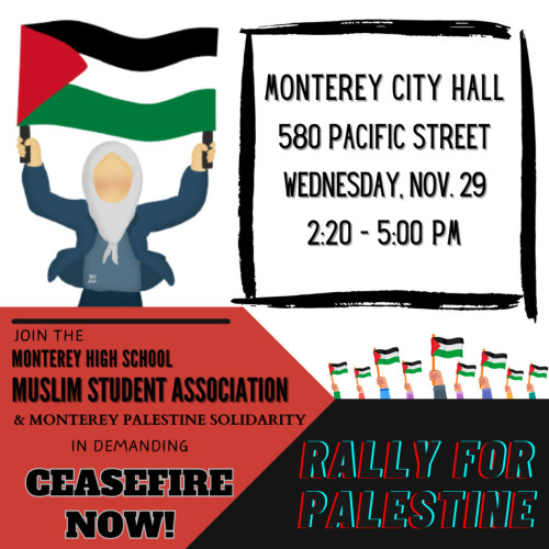 Join the Monterey High School Muslim Student Association and Monterey Palestine Solidarity in demanding CEASEFIRE NOW!