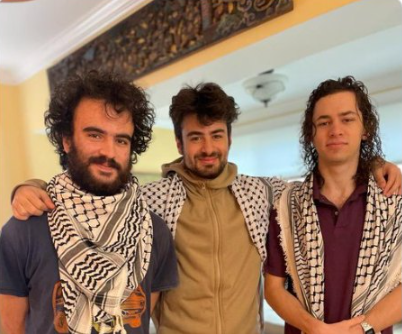 "Three young Palestinian men, Hisham Awartani, Tahseen Ali, and Kenan Abdulhamid, were shot last night on their way to a family dinner in Burlington, USA. Their crime? Wearing the Palestinian keffiyeh. They are critically injured." (See family statement below,)