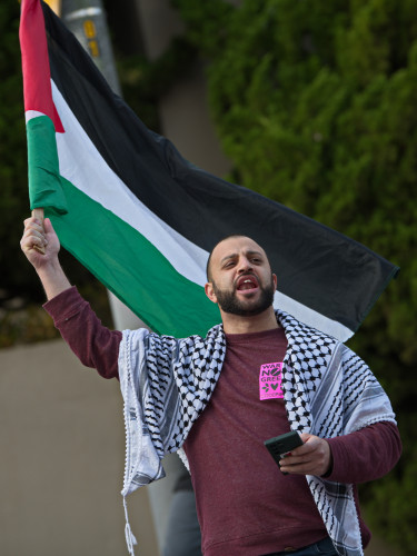 Protesters demand she tell Biden to require cease fire