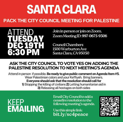 Santa Clara: Pack the City Council Meeting for Palestine